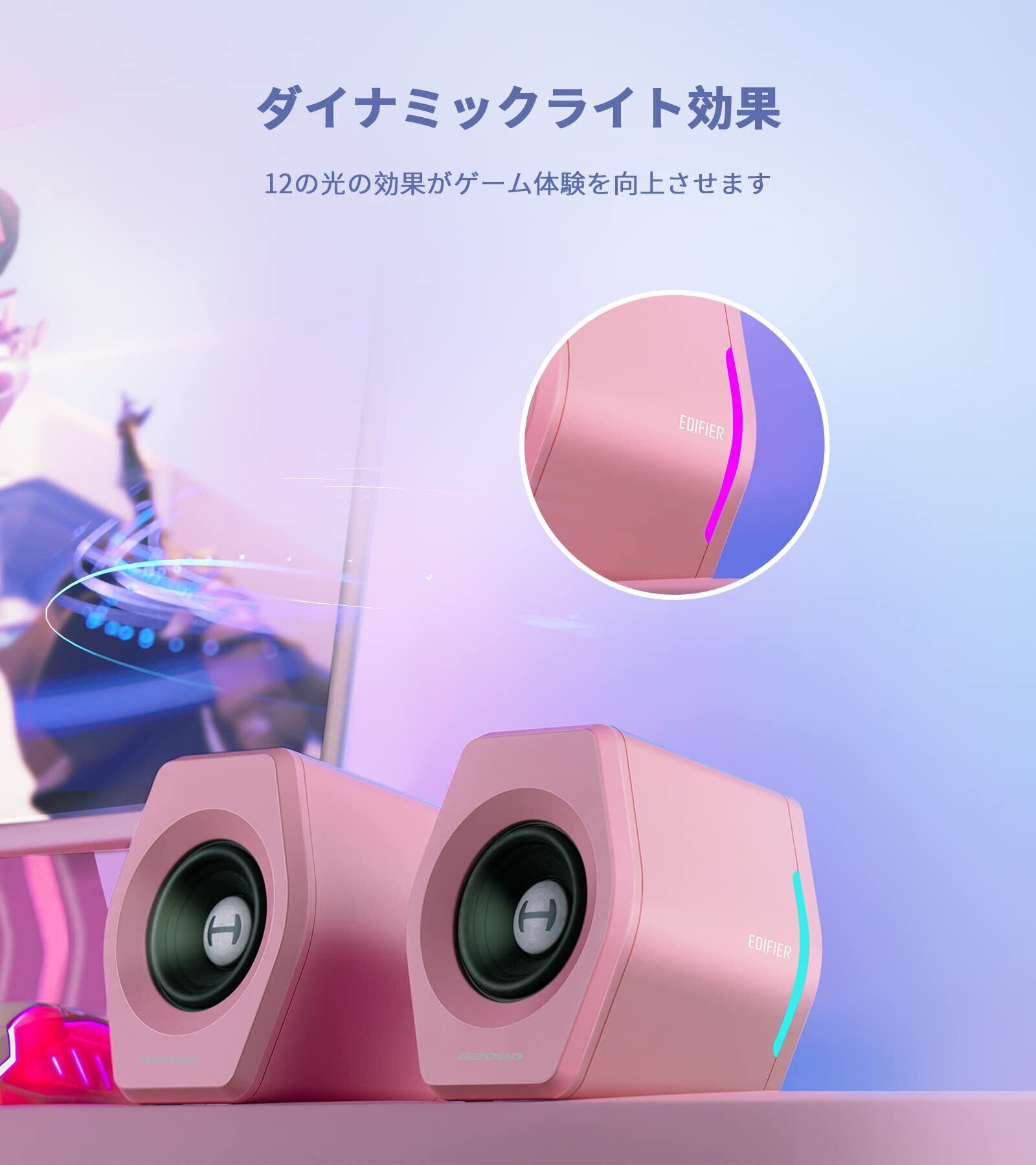 【カラフルなRGBライト】Edifierゲームスピーカーは素敵なRGBライトがつき、12色のライトは自由に切り替えます。全体の形はとてもクールで、雰囲気作りに最適、ゲーム/音楽/映画をお楽しみます。