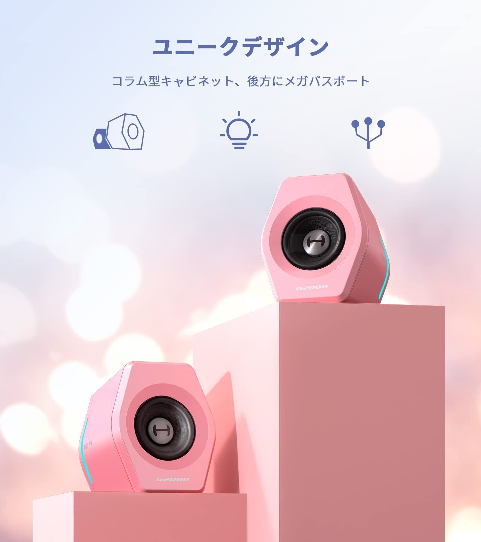 「EDIFIER直営店」Edifier G2000 ゲーミング スピーカー パソコン用 Bluetooth5.1 32W Hi-Fi音質 有線 Bluetooth/USB/AUX接続 PC対応 LEDライド付き 小型 2台一組
