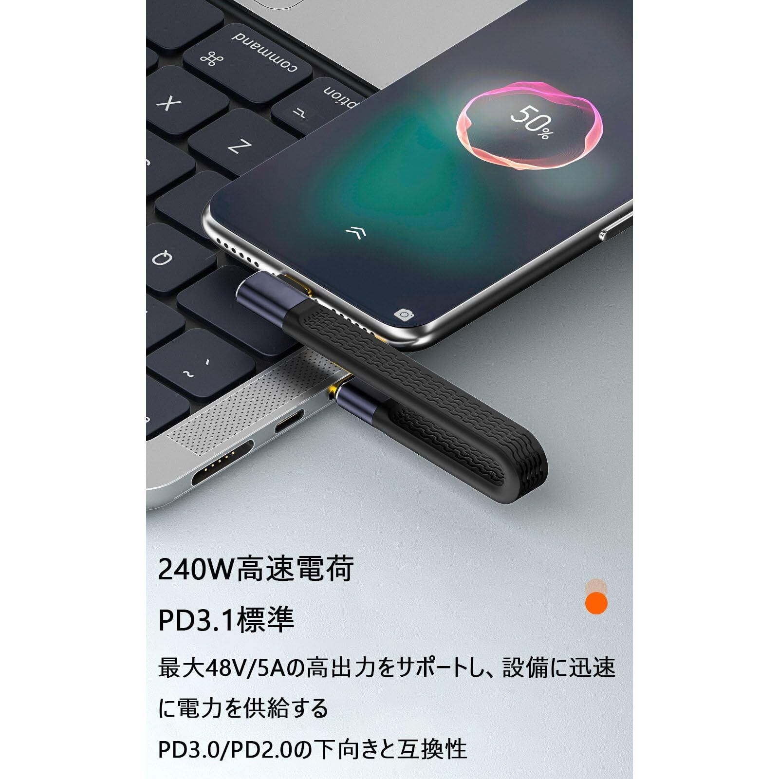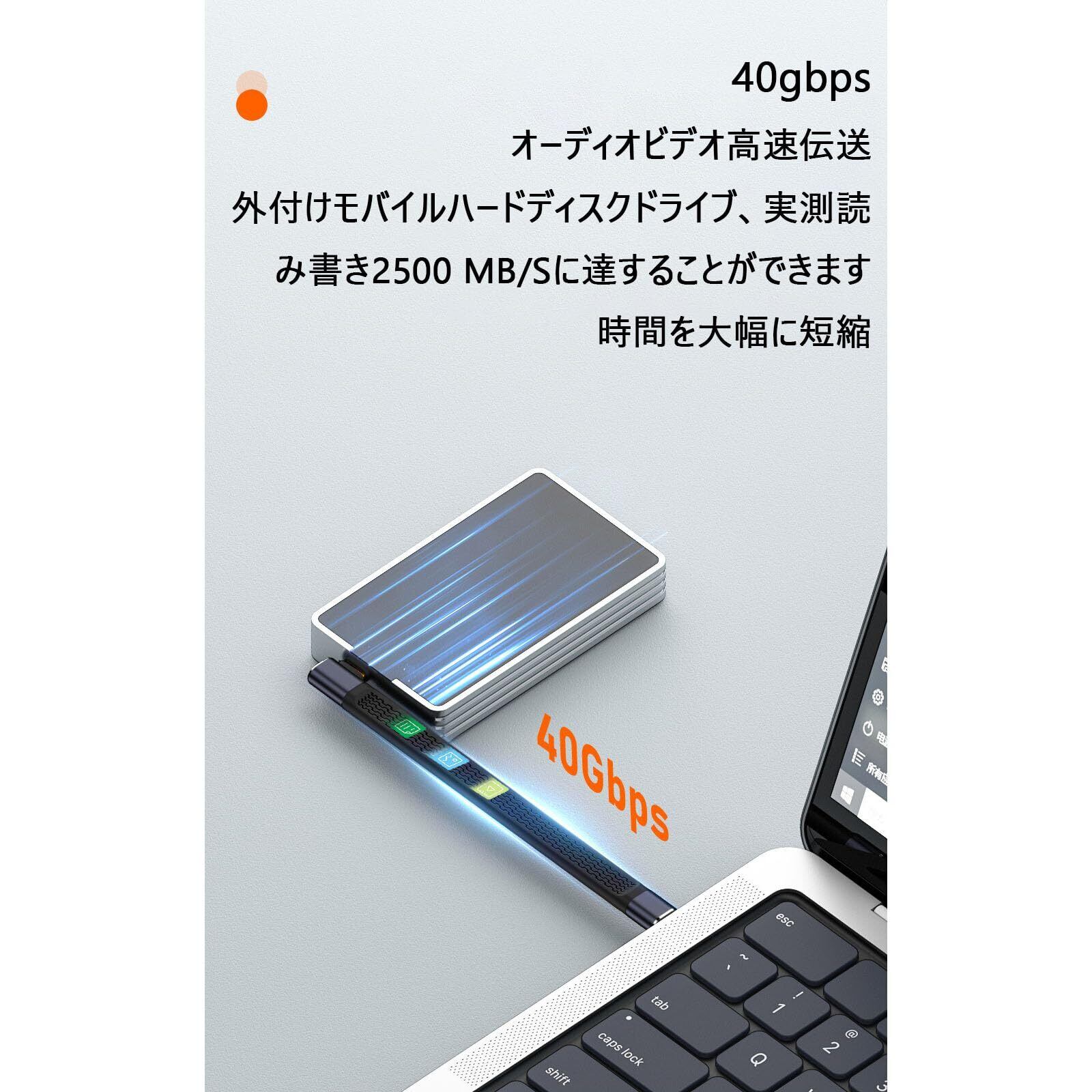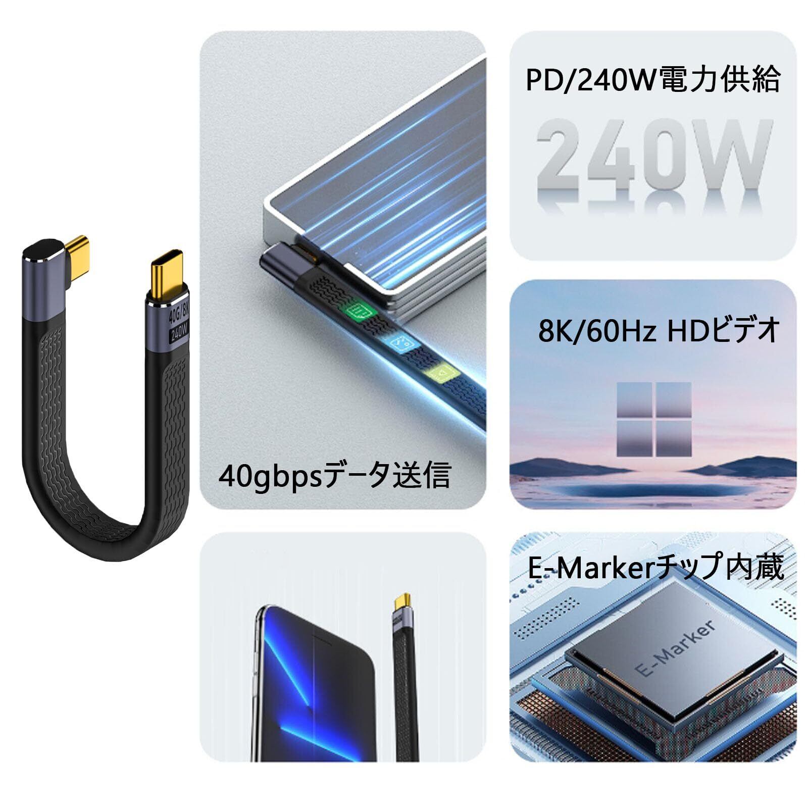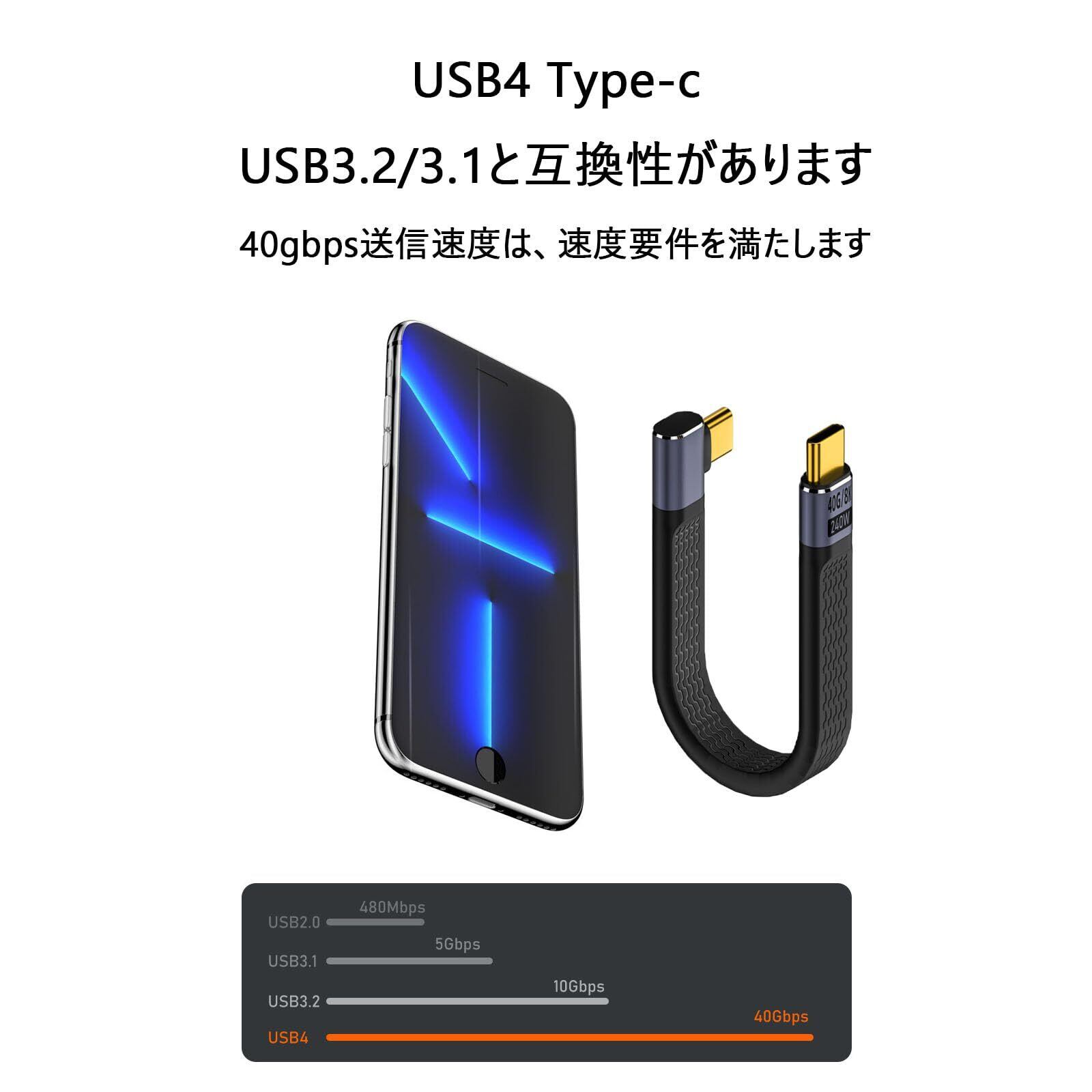短いUSB Type-CtoC ケーブル 40Gbps高速データ転送&PD対応240W/5A急速充電& 8K@60Hz映像出力 サイドベンド USB-C to USB-C ケーブル 約13cm USBケーブル フラットケーブル