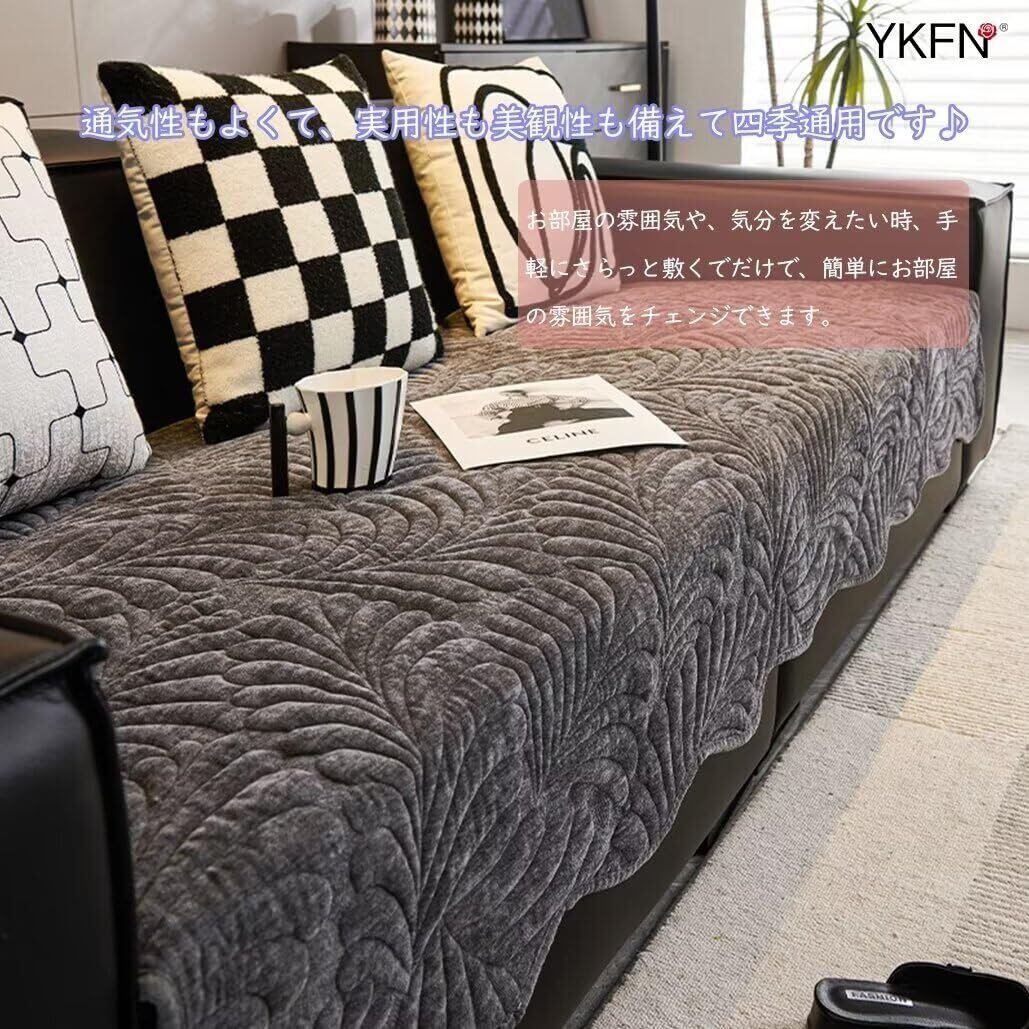 YKFN ソファパッド ソファーカバー 3人掛け 肘付き かけるだけ マルチカバー ソファー ペット用 替えソファカバー ソファーシート 滑り止め 座面カバー 肘なし 防塵 汚れ防止 傷防止 爪とぎ防止 北欧 シンプル ペットホーム カウチ ソファーシーツ ソファー保護カバー 無地 四季通用 洗える ダークグレー 70*150CM