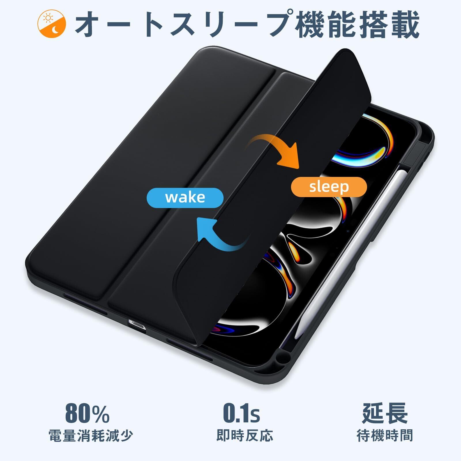 【自動ウェイクアップ/スリープ機能】 対応iPad pro m4 11インチ ケースはオートスリープ機能が搭載されています。ケースのフタを開けると対応iPadが起動し、フタを閉じると自動的にスリープモードになります。マグネット内蔵されているためカバンに入れてもカバーが勝手に開けることを心配必要なくしっかり閉められます。自分で対応iPadをON/OFFする手間を省くことができます。