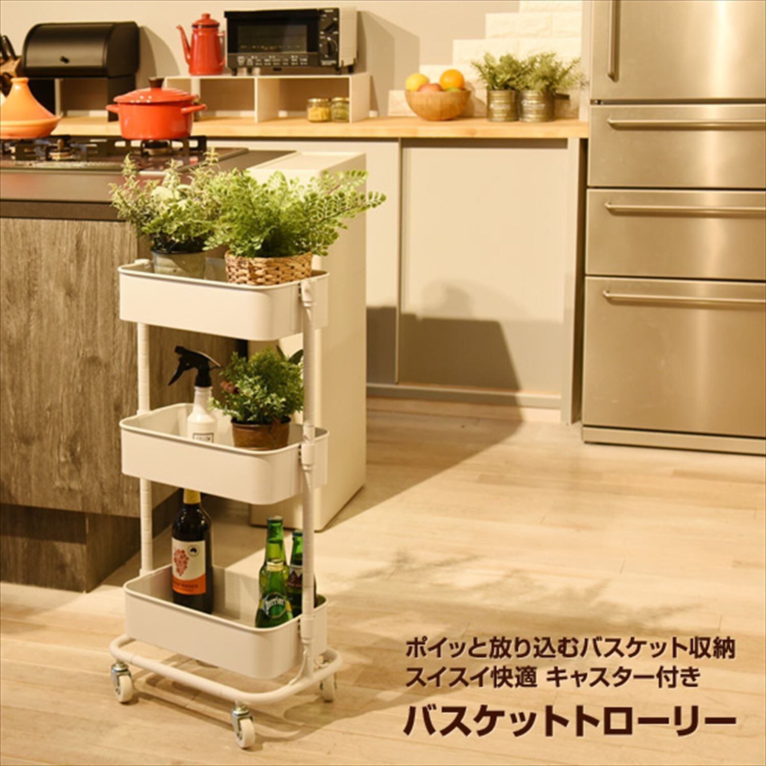 ●上から放り込める、バスケットタイプのキャスター付きワゴン
