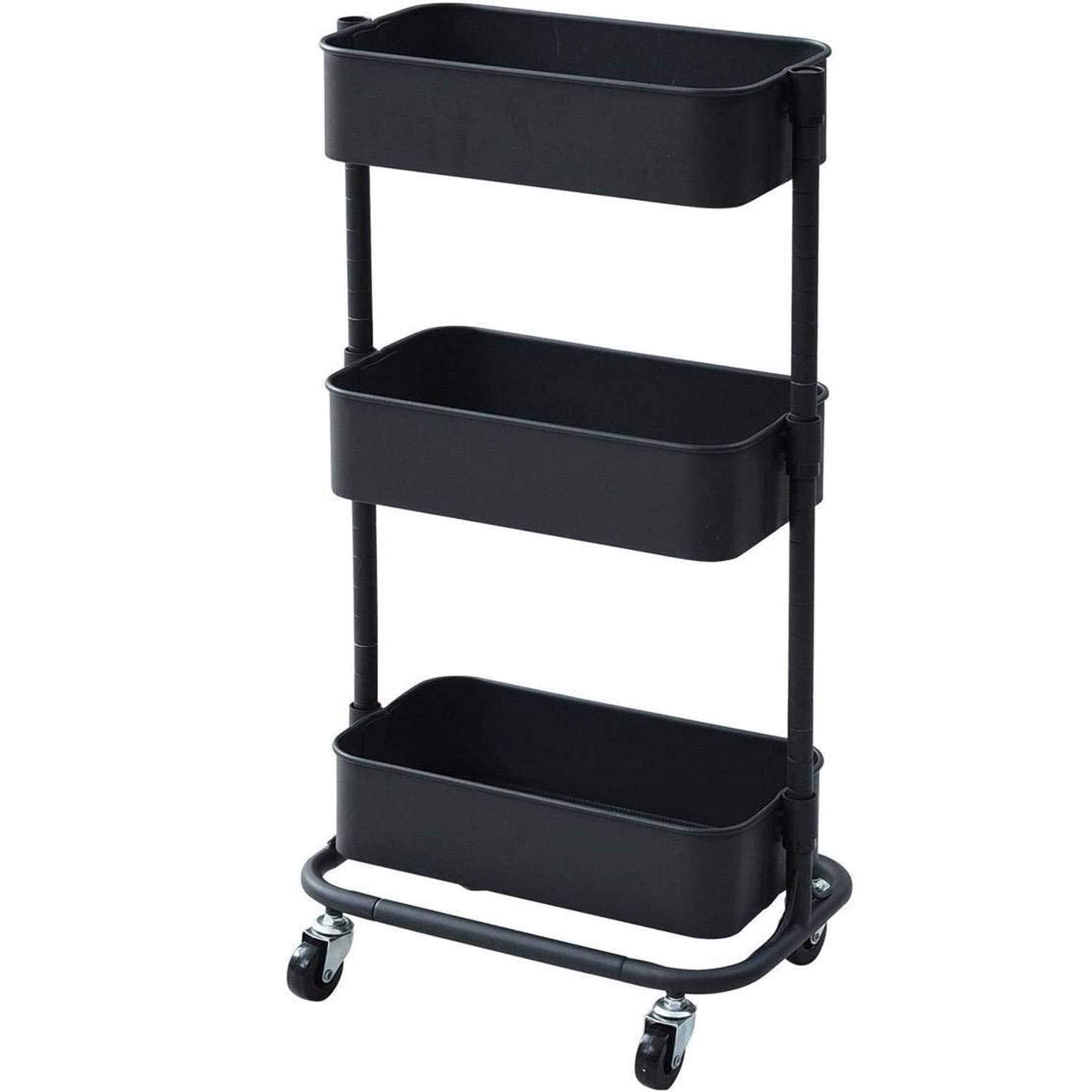 山善(YAMAZEN) キッチンワゴン スリム 高さ調節可能 全体耐荷重30kg メッシュタイプ キャスター付き 幅39.5×奥行27.5×高さ77cm バスケットトローリー 組立品 ブラック LSBT-3(BK)