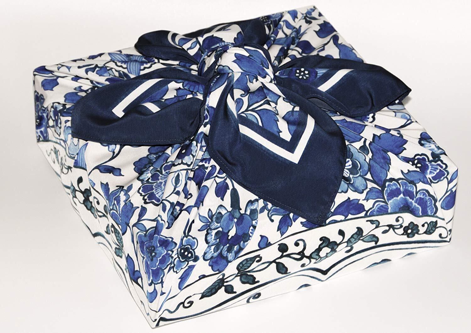 朝倉染布 風呂敷 - 約96×96cm 朝倉染布 超撥水風呂敷ながれ 平織 染付更紗 1-5