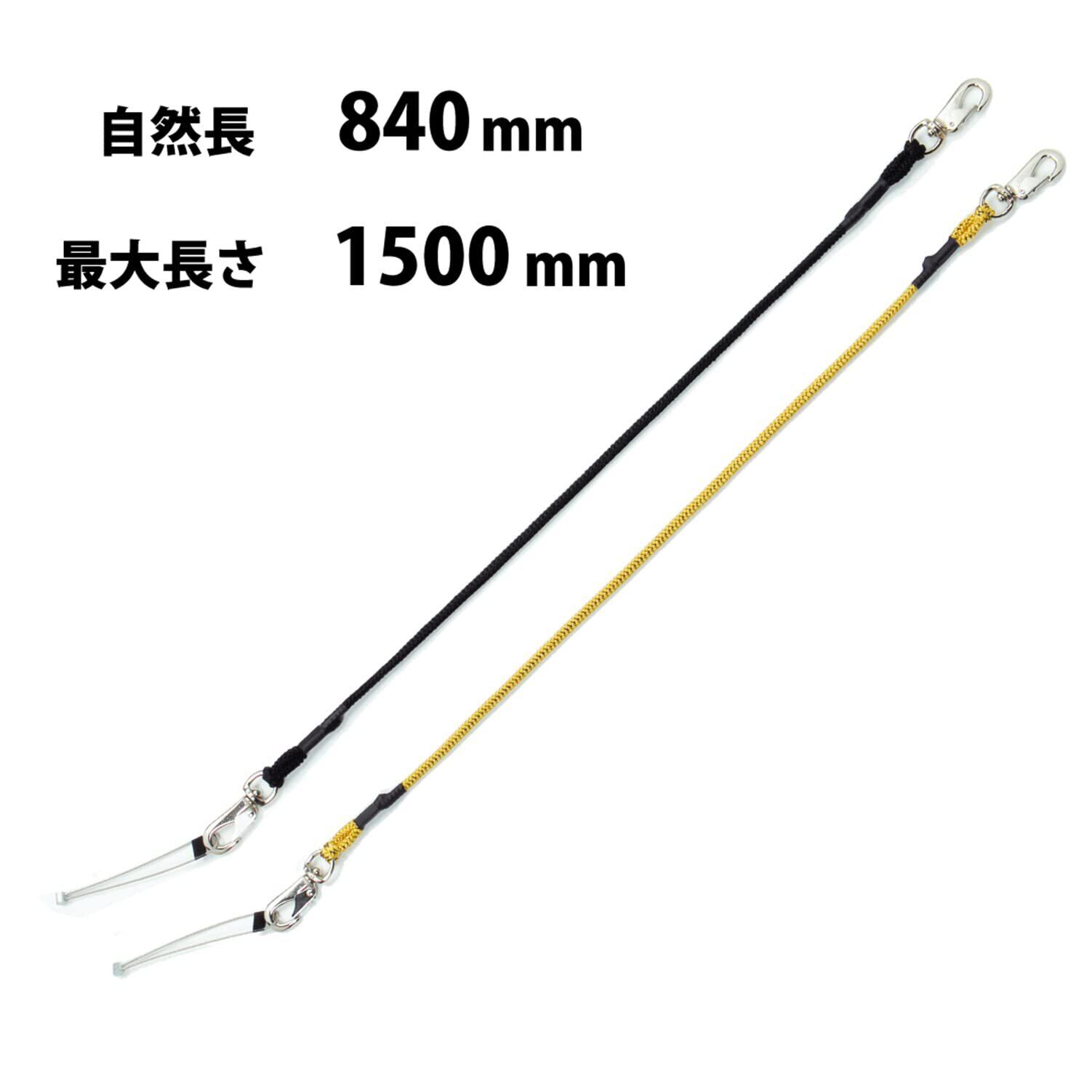 特殊縫製のヒモで最大1500mmまで伸びます