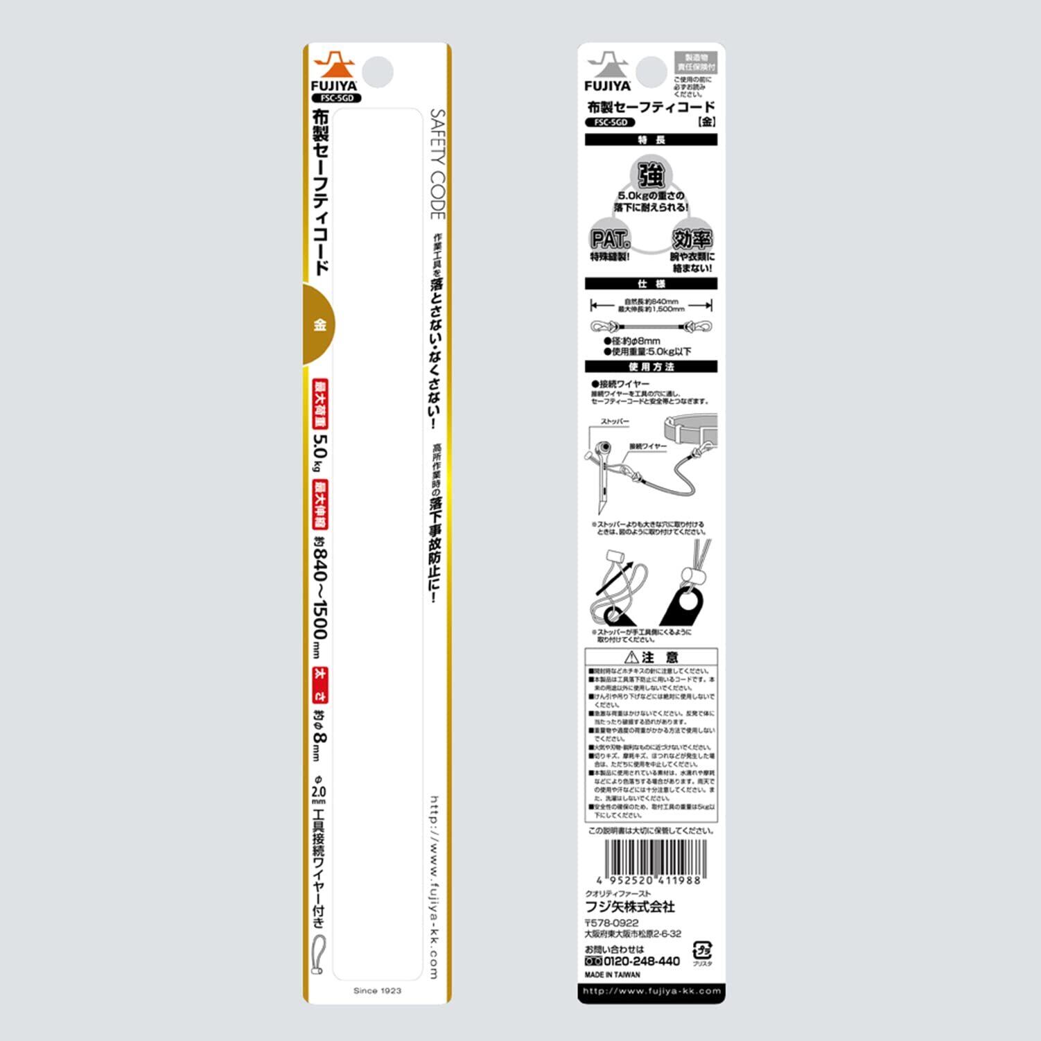 [フジ矢] Fujiya 布製セーフティコード 5kgタイプ 金 FSC-5GD