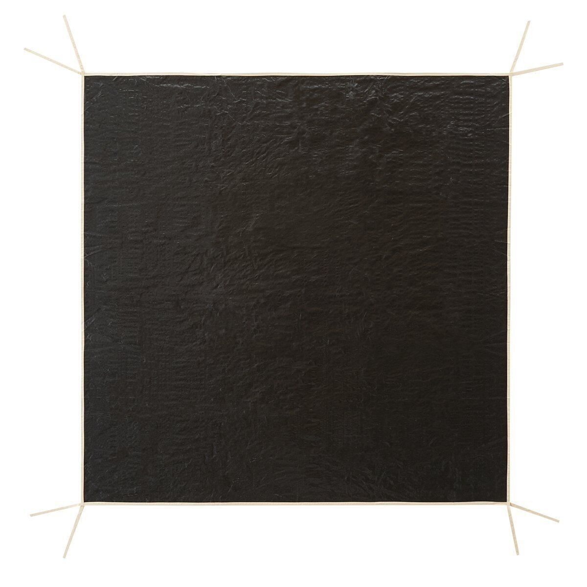フロアシートと地面の間に敷き、四隅をテントフレームに結びつけるだけ。