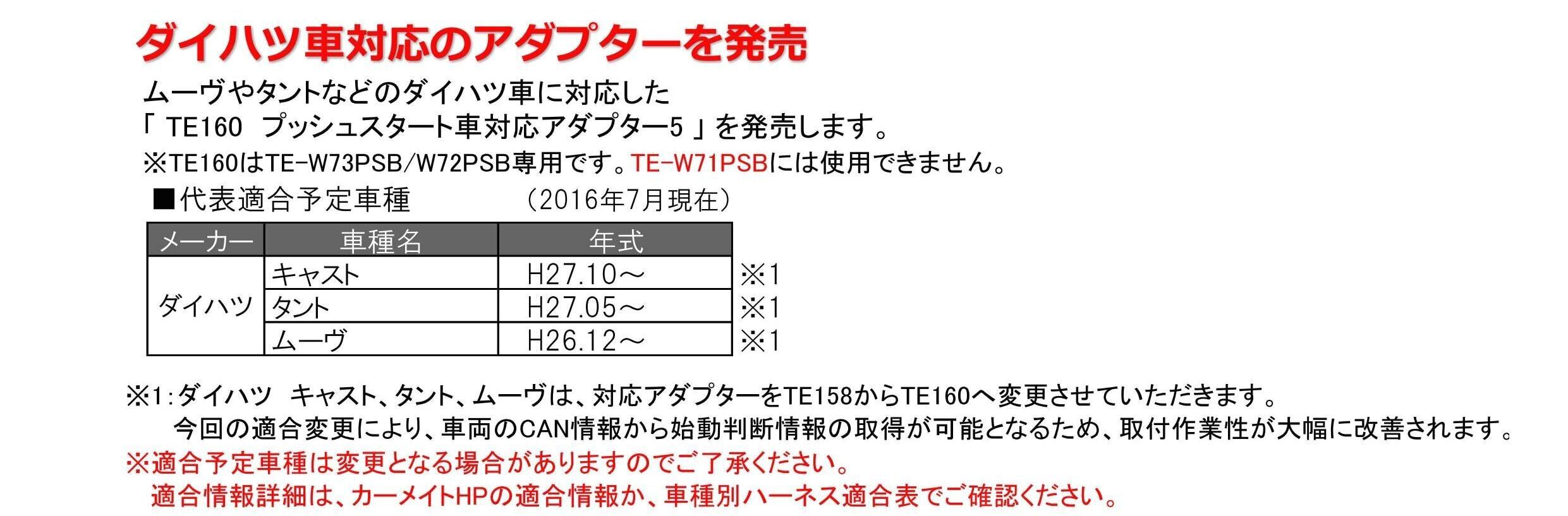 カーメイトのエンジンスターター用プッシュスタート対応アダプター、TE160です。