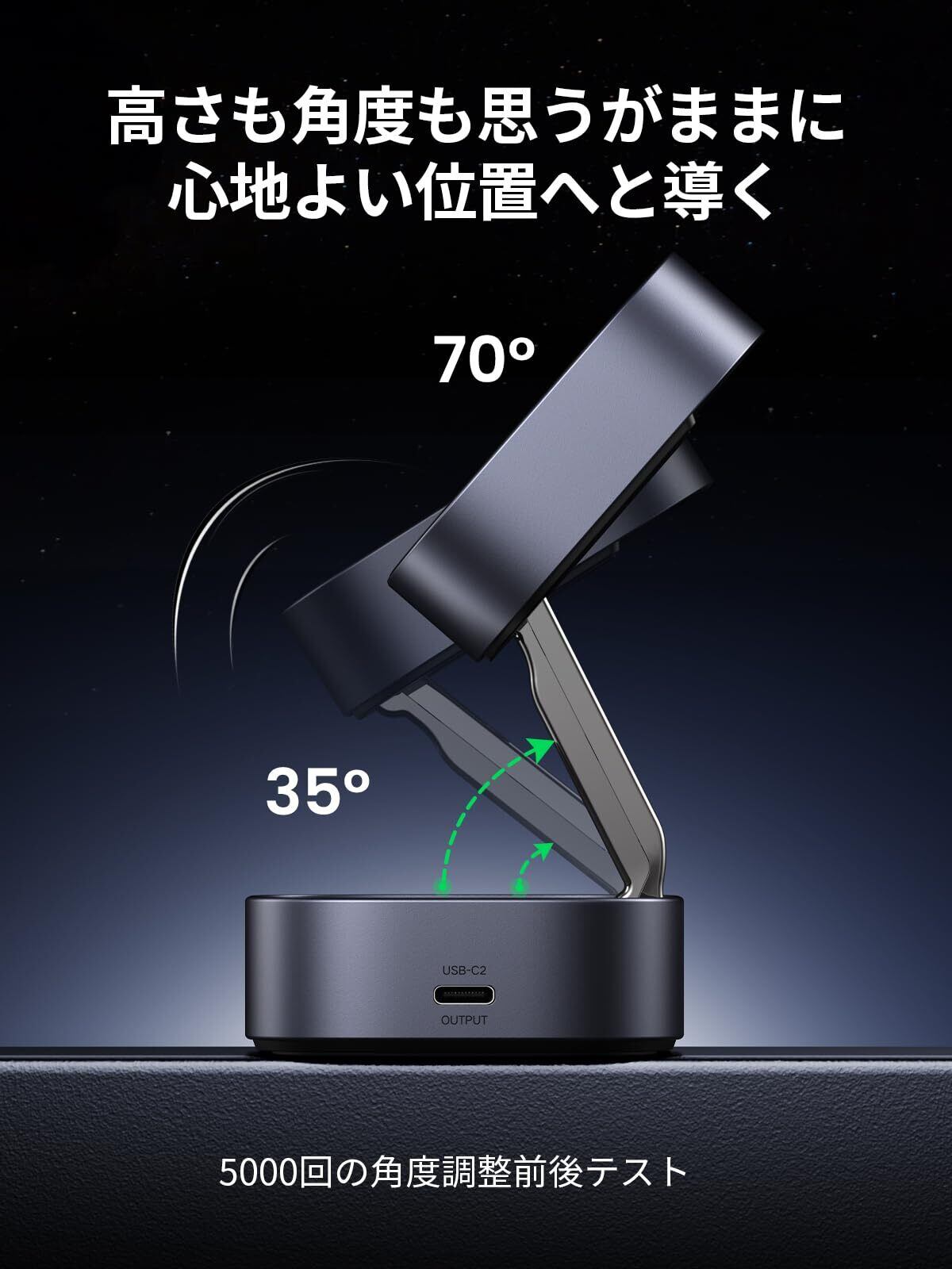 コンパクトで折りたたみ可能: このワイヤレス充電ステーションは携帯型を採用し、小さな正方形に折りたたむことができ、高さと角度を調整することができます。市場の同様の製品と比較して、当社のサイズは40%削減され、コンパクトで持ち運びやすいため、出先や旅行先でも便利にご使用いただけます。