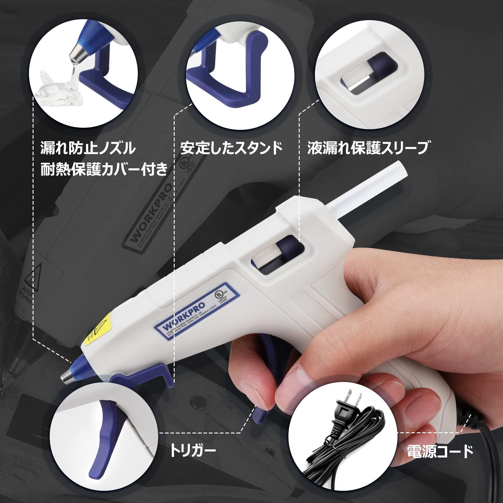 WORKPRO グルーガン ボンドガン 小型 100秒急速加熱 スティック20本付 軽量速乾 液漏れ・やけど防止 改良されたスタンド 強力粘着 補修 接着剤 DIY趣味 手芸 木工作業用