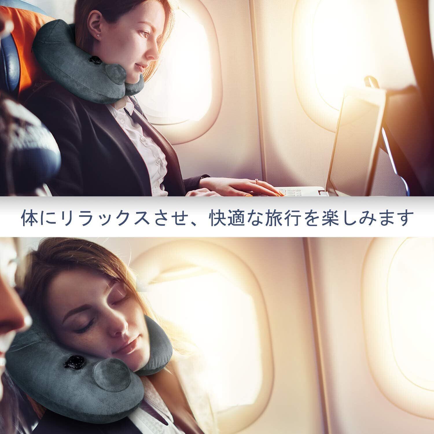 PZCOD ネックピロー 首枕 旅行用 飛行機 空気枕 携帯枕 U型 バス オフィス トラベル 旅行便利グッズ 収納袋 洗えるカバー