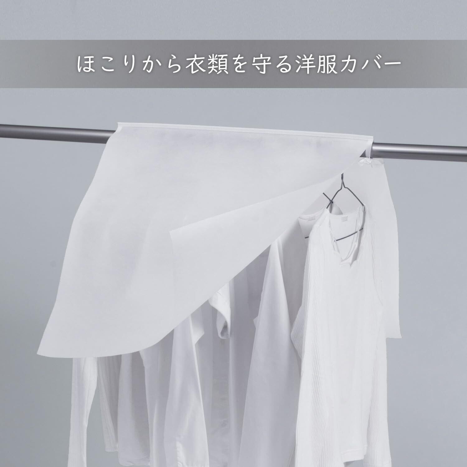 アストロ 衣類カバー ホワイト ショート丈 通気性の良い不織布製 クローゼット 洋服カバー ホコリ除けカバー 肩のホコリ除け まとめてカバー ハンガーラックカバー ハーフ丈 スリム 子供服のホコリ除けにも 890-02