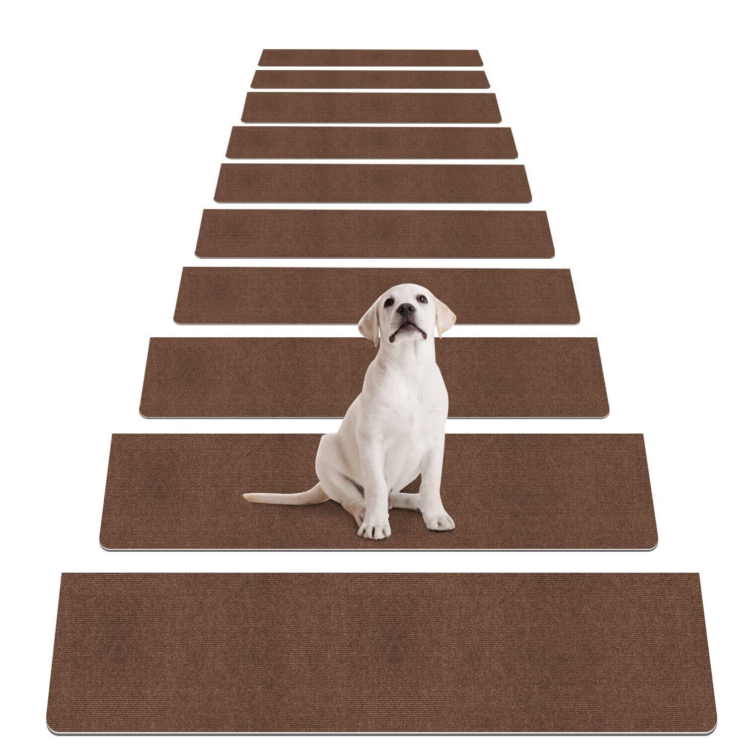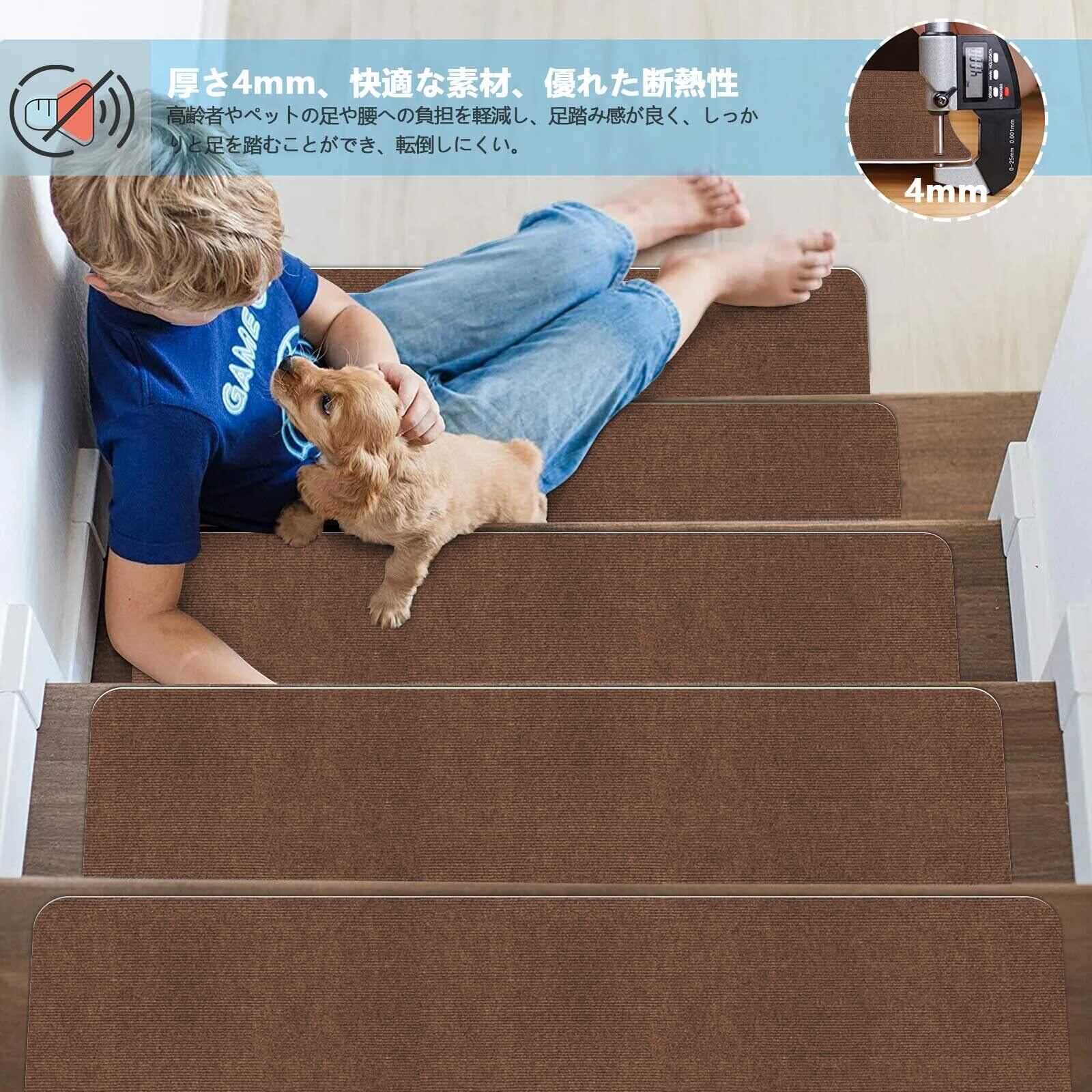 【Amazon 限定ブランド】階段マット 階段用滑り止め70X22cm 【15枚入り】 階段カーペット 吸着 厚み4mm 階段敷き Bolinker 足腰負担軽減 ズレない 床保護 ステップマット 階段クッション 転倒防止 キズ防止 子供や高齢者 ペットなどの安全対策に 猫犬階段滑り止め (ブラウン)