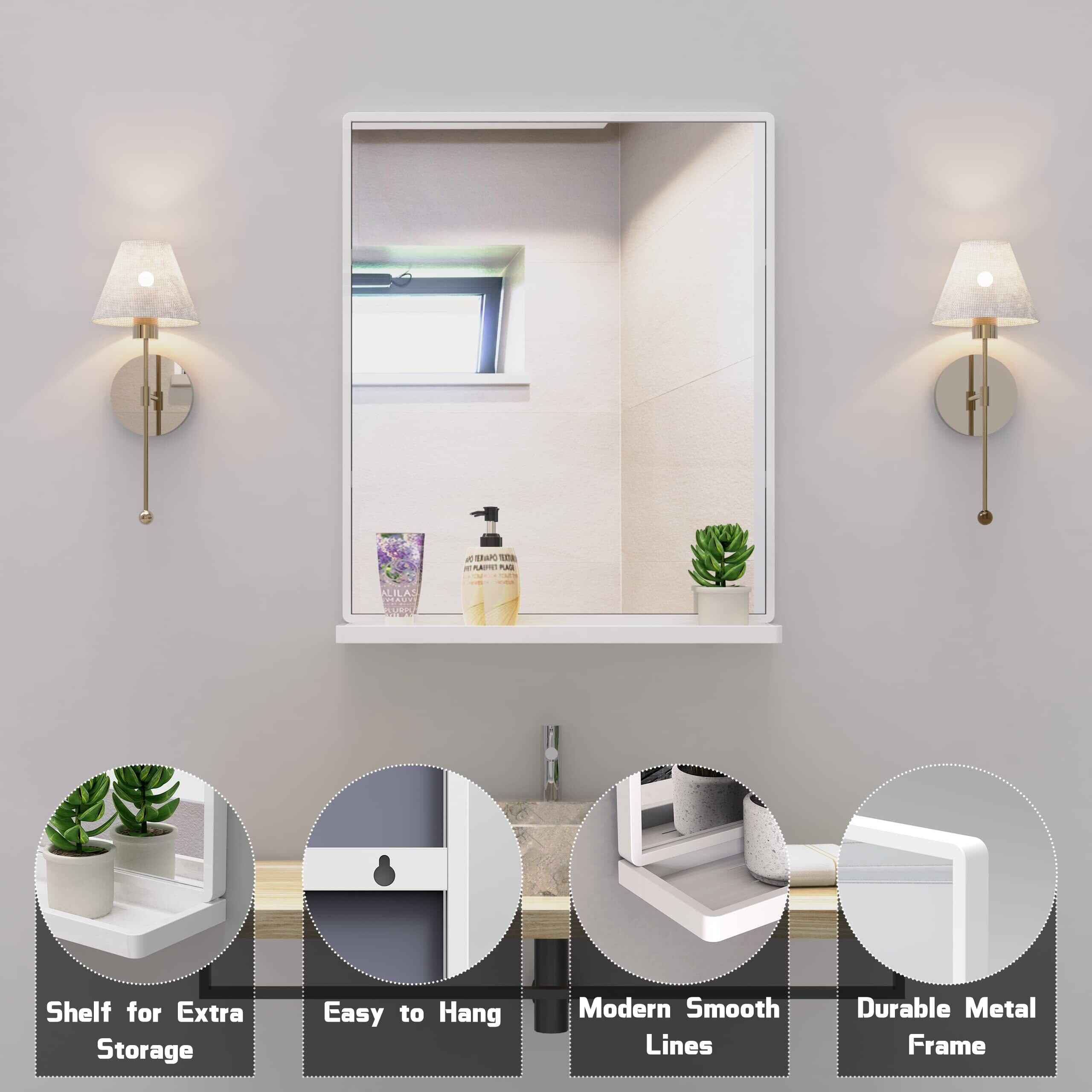 ANYHI 壁掛け鏡 トレイ付き長方形ミラー 洗面所 ミラー 壁掛け 幅51×高さ62cm 浴室 洗面台用