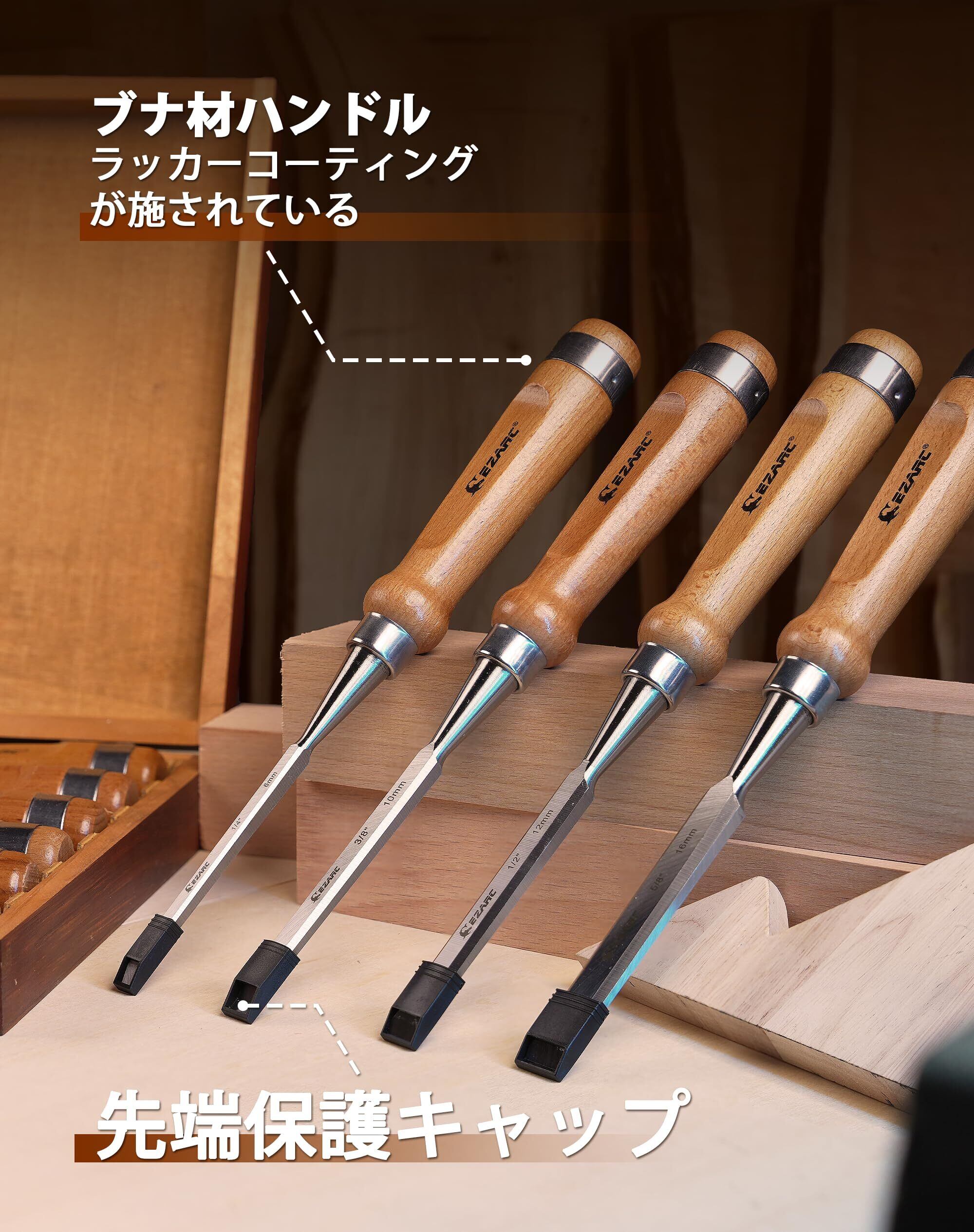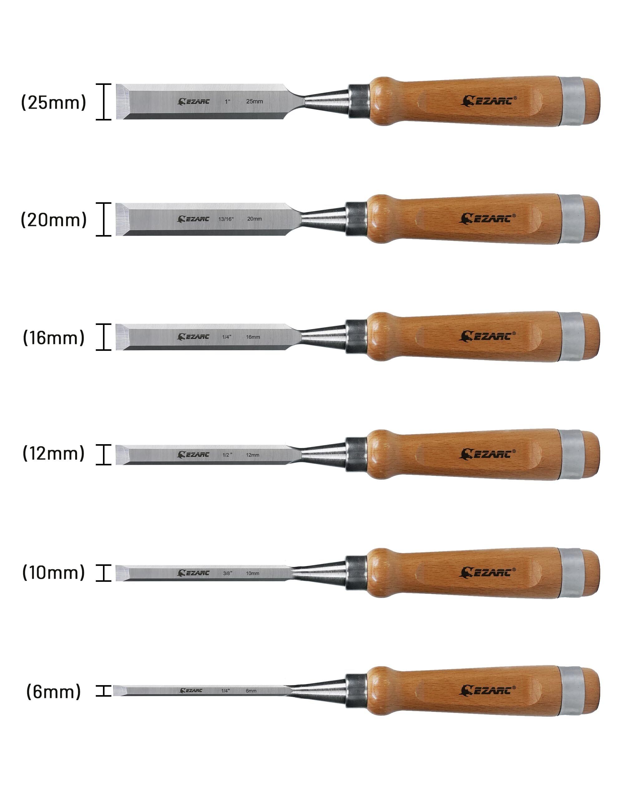 EZARC のみ セット 6本組 木工用 6/10/12/16/20/25mm 切れ味抜群 プロ仕様 ブナ材ハンドル 大工道具 木箱入れ