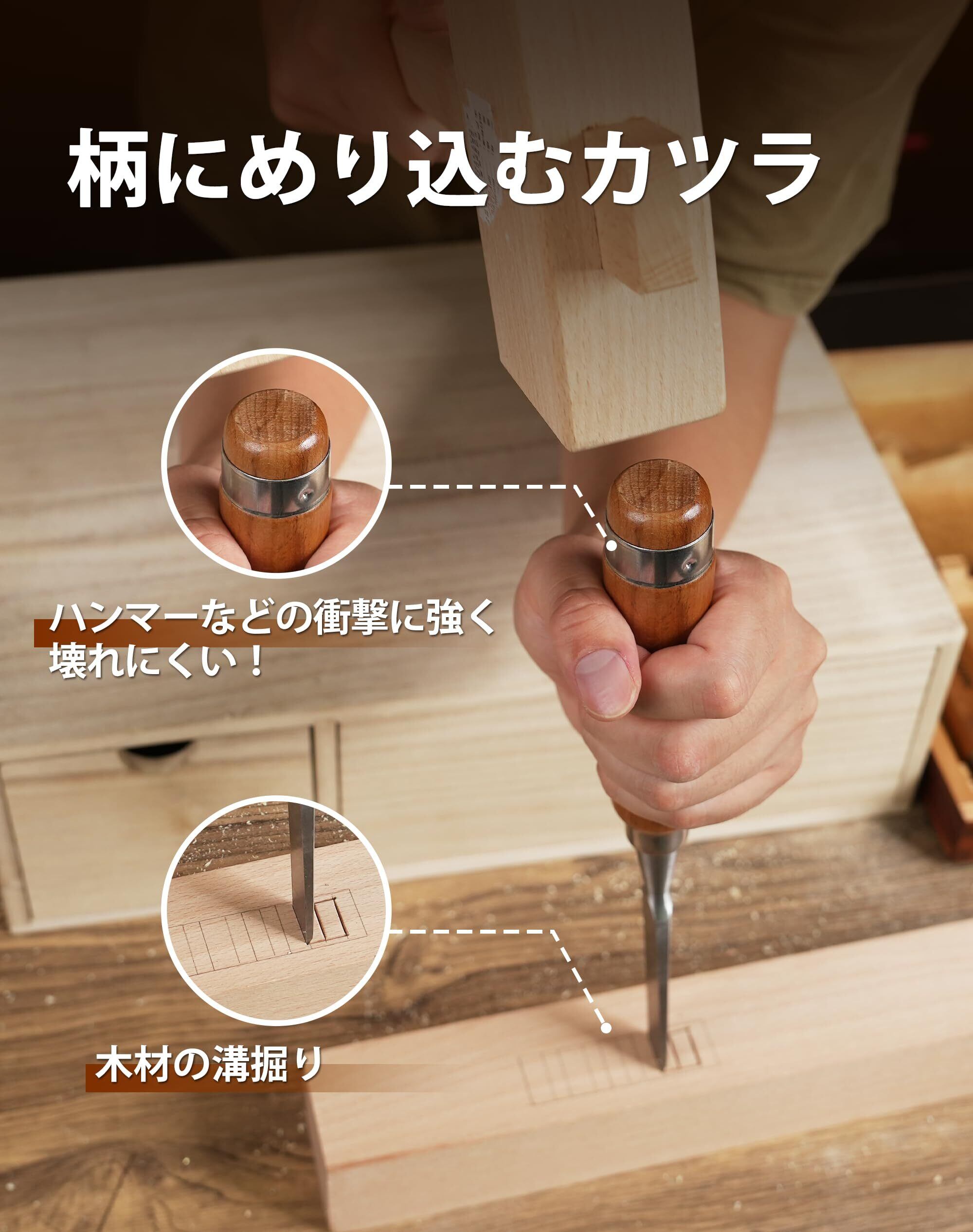 【6本組】使用頻度が高いノミ6本セット(6/10/12/16/20/25mm)、鋭い切れ味で幅広い作業に使用できます。