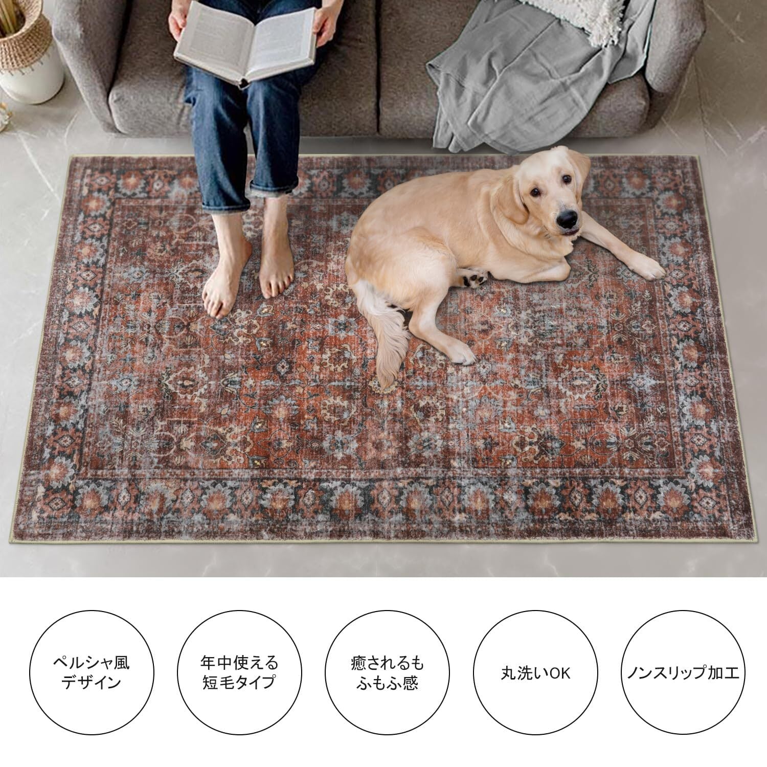 HAOCOO ラグ カーペット 洗える 140×200cm オールシーズン適用 絨毯 ペルシャ風 ラグマット 1.5畳 ふわふわ おしゃれ 滑り止め 低反発 防ダニ 防臭 軽量 防音マット 室内用 デスクマット ダイニングマット アンティーク 花柄