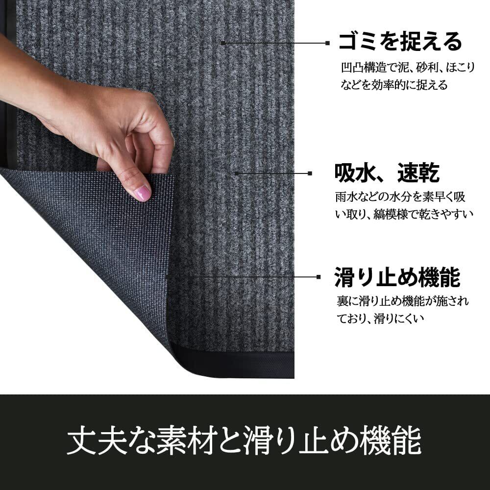 CHICHIC玄関マット 屋外 泥落とし 滑り止め 吸水 店舗用玄関マット 業務用 約40×60㎝ グレー03