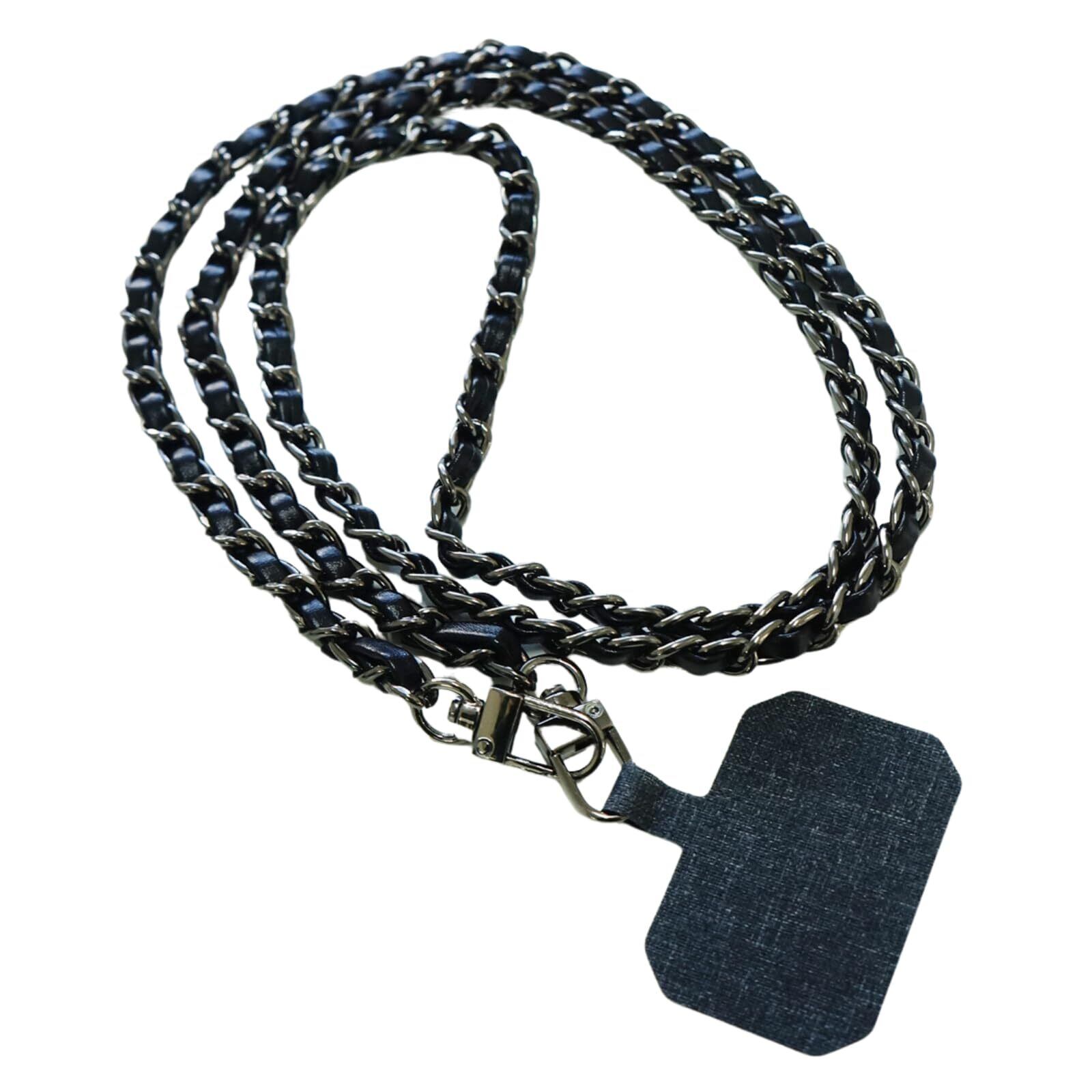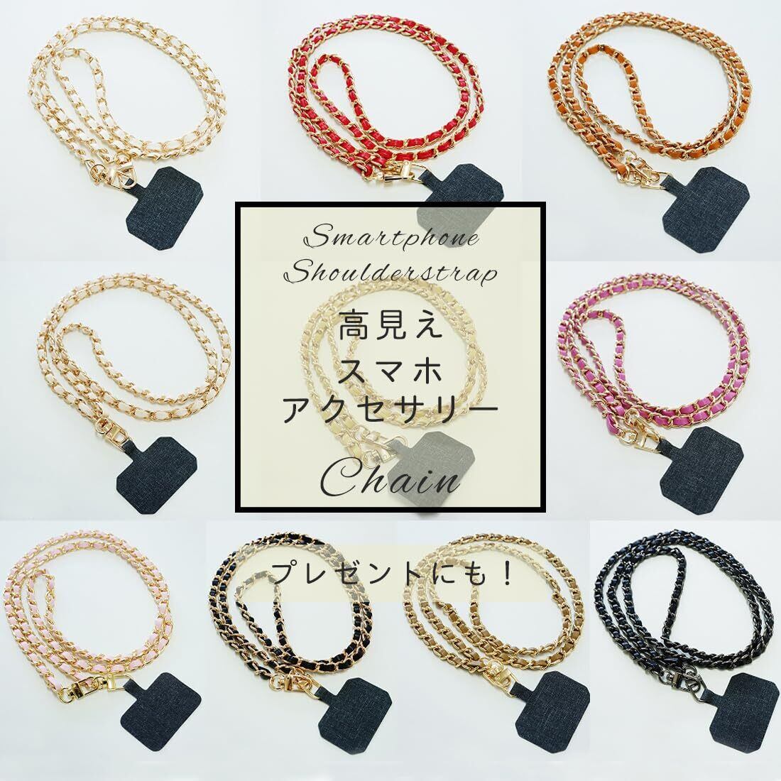 【商品詳細】チェーン長さ:約120cm,太さ:約8mm/プレートサイズ:タテ5.2×ヨコ5.7cm/チェーン素材:合成皮革、合金/プレート素材:TPU(熱可塑性ポリウレタン)※お手持ちのスマホケースによってはご使用いただけない場合がございます。充電口の設計をご確認の上お買い求めください。