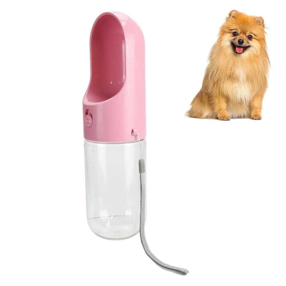 ペット健康堂 犬 給水ボトル (小型犬 ~ 大型犬) ウォーターボトル 給水器 散歩 水飲み器 (飲みやすい 持ち運び) 水漏れ防止 ストラップ付 (400ml / ピンク)
