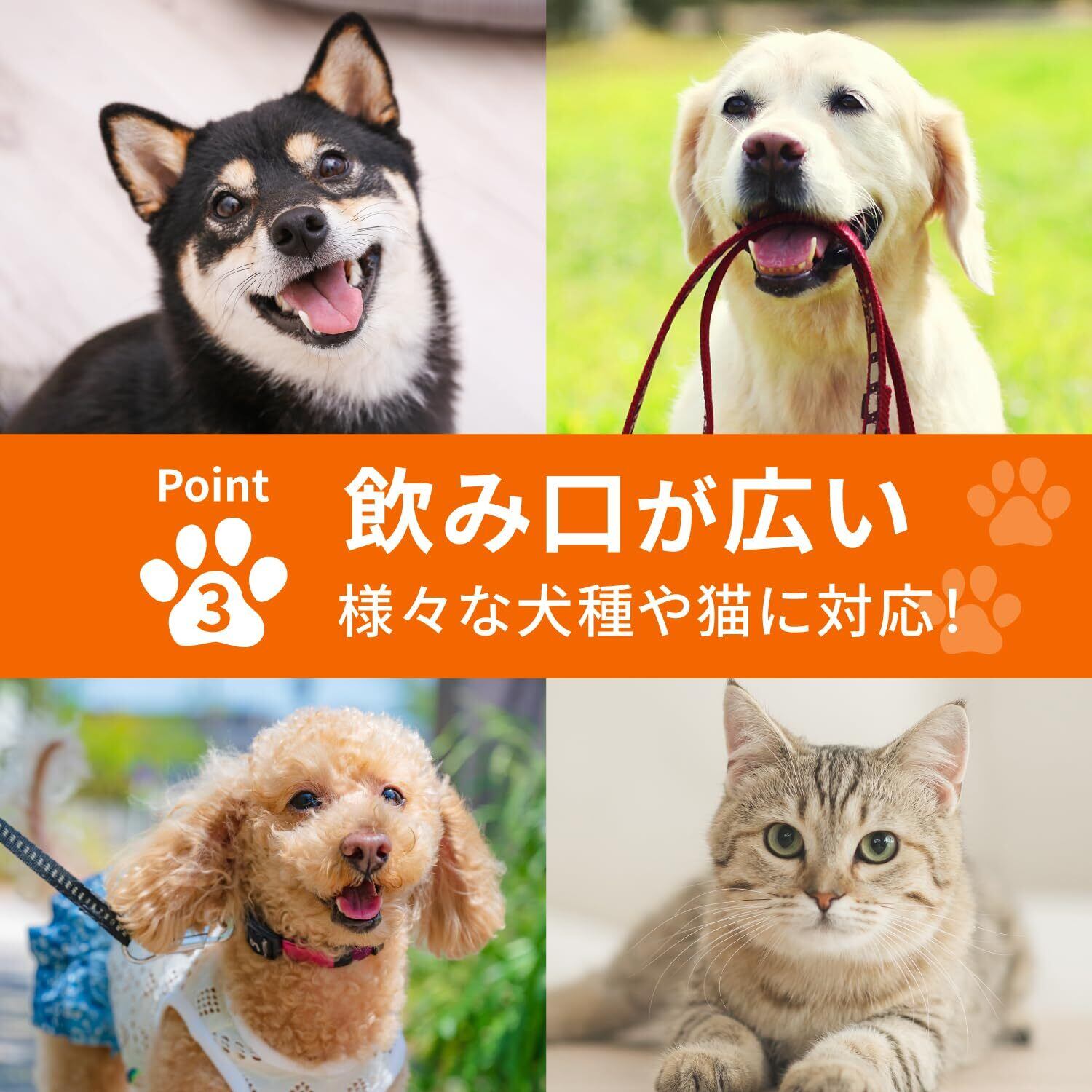 【ペットの水分補給に】散歩やドッグランなどの外出先で重宝するワンちゃん用の給水ボトルです。飲み口が広いため、小型犬から大型犬まで様々な犬種や猫に対応しています。