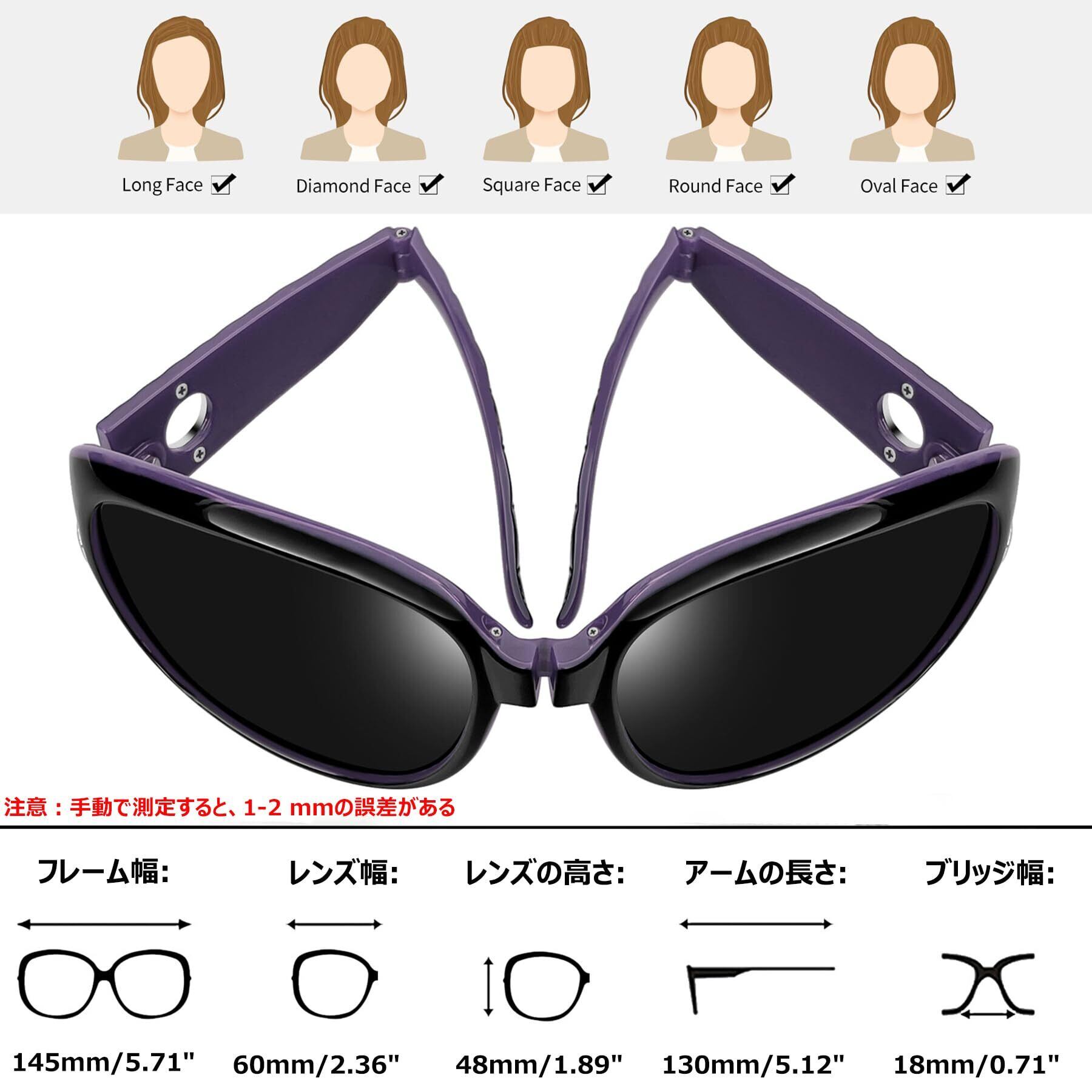 【商品仕様】フレーム幅:145㎜;レンズ幅:60㎜;レンズの高さ:48㎜;ブリッジ:18㎜;テンプル長さ:130㎜;重量:32g;レンズの測定サイズにはメガネフレームは含まれません。紫外線カットサングラスは、街をブラブラするだけでなく、ビーチでの休暇、ファッションパーティー、登山、スポーツ、ランニング、自転車、ドライブ、釣りなどのシチュエンにも非常に適しています