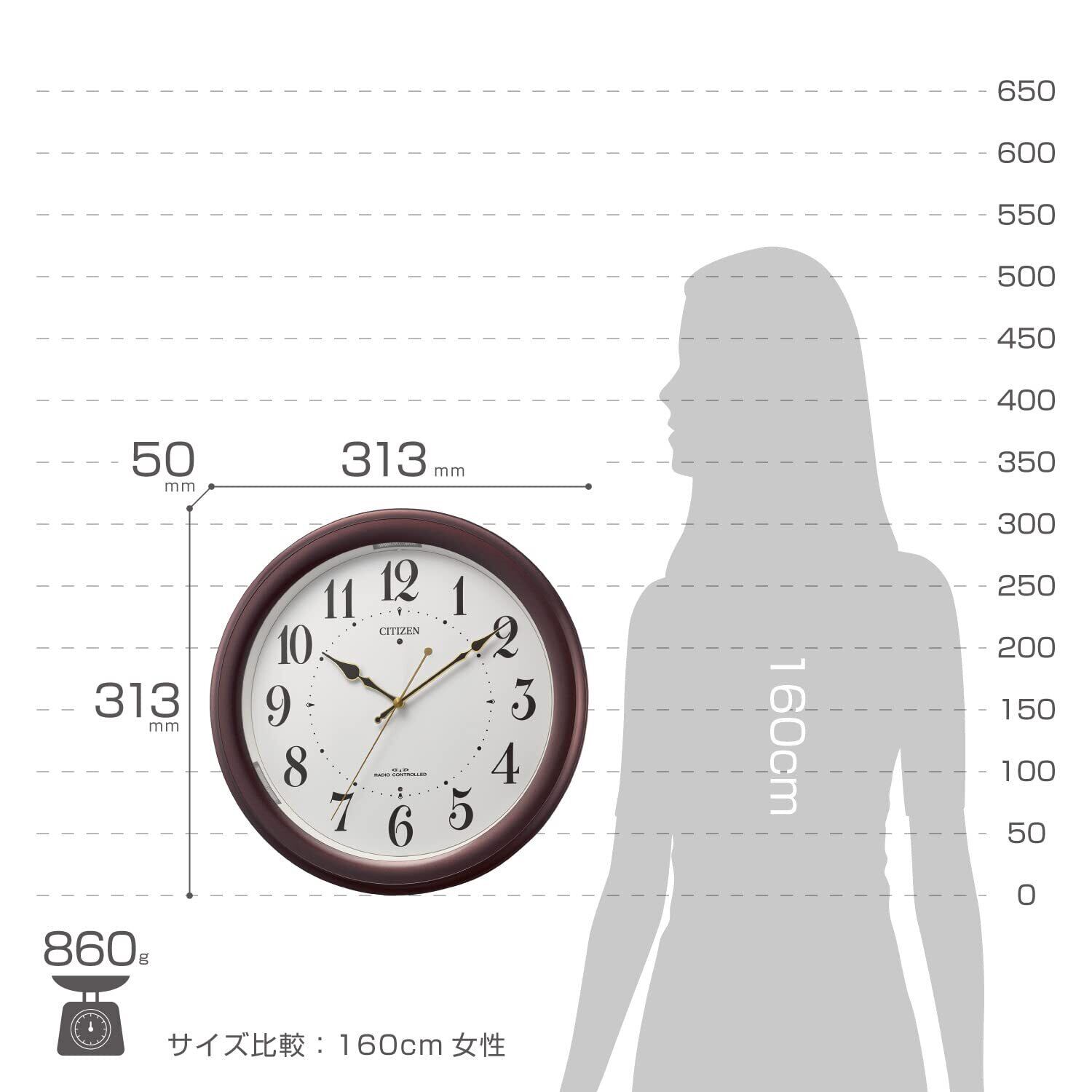 リズム(RHYTHM) シチズン 掛け時計 電波時計 アナログ MA36 さらに明るい 暗所 ライト 自動 点灯 (当社比150%UP) 茶 φ31.3×5.0cm CITIZEN 4MYA36-006