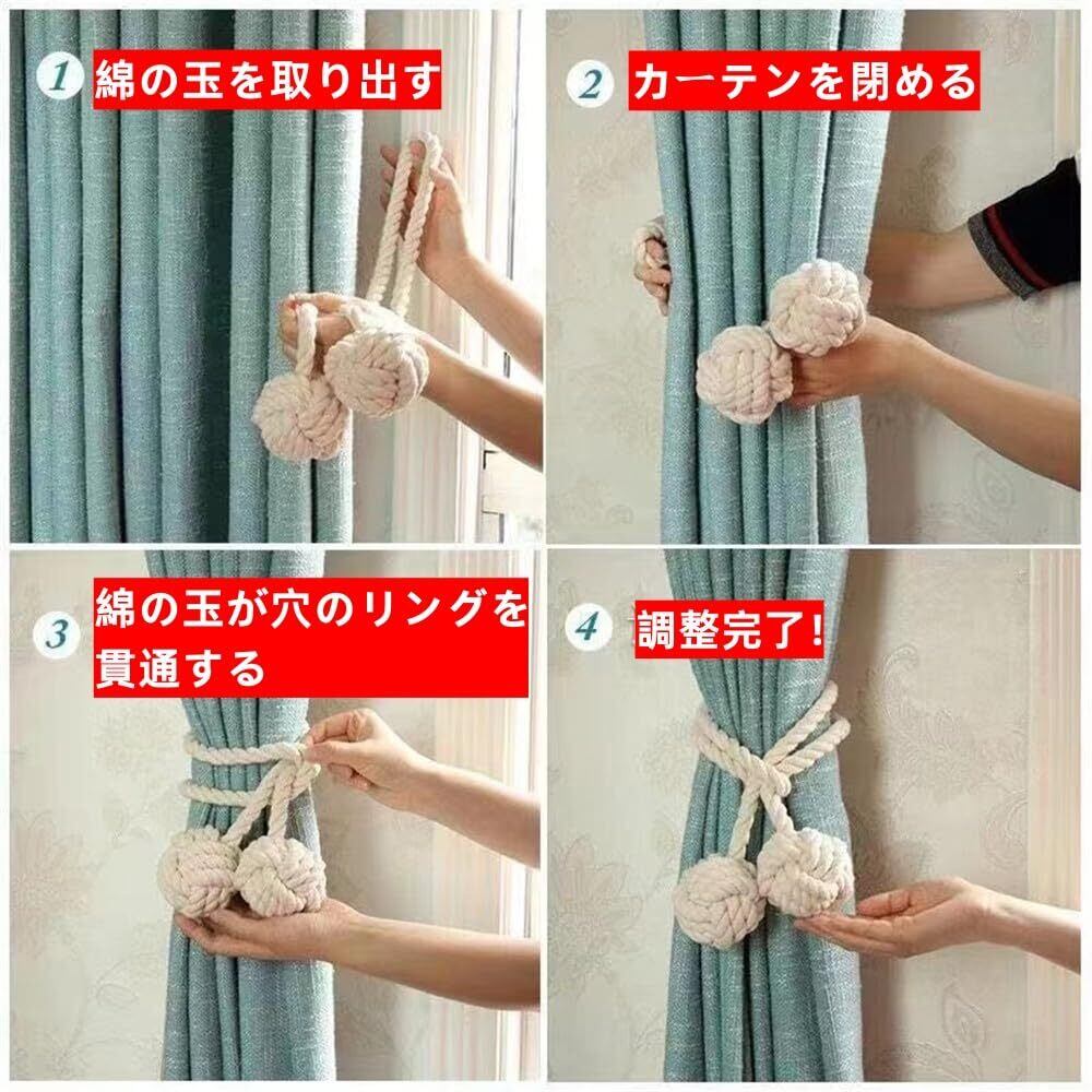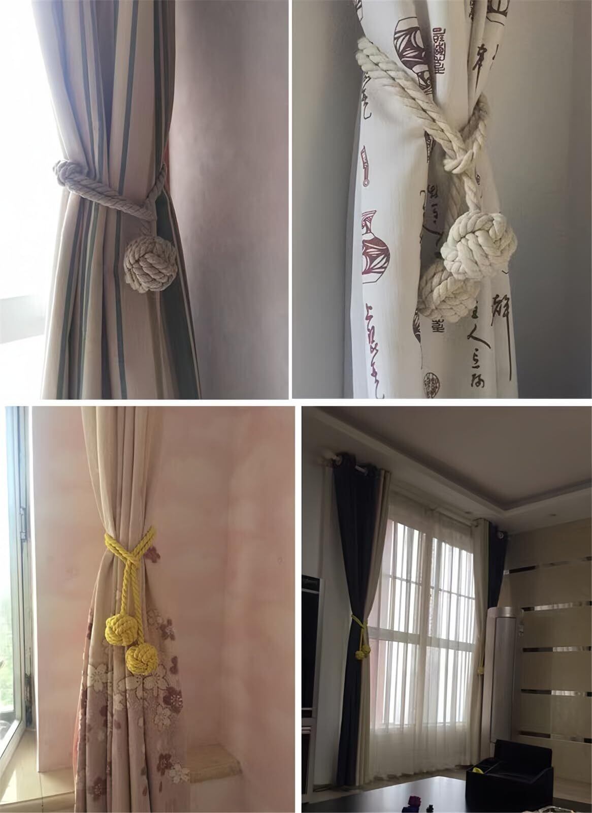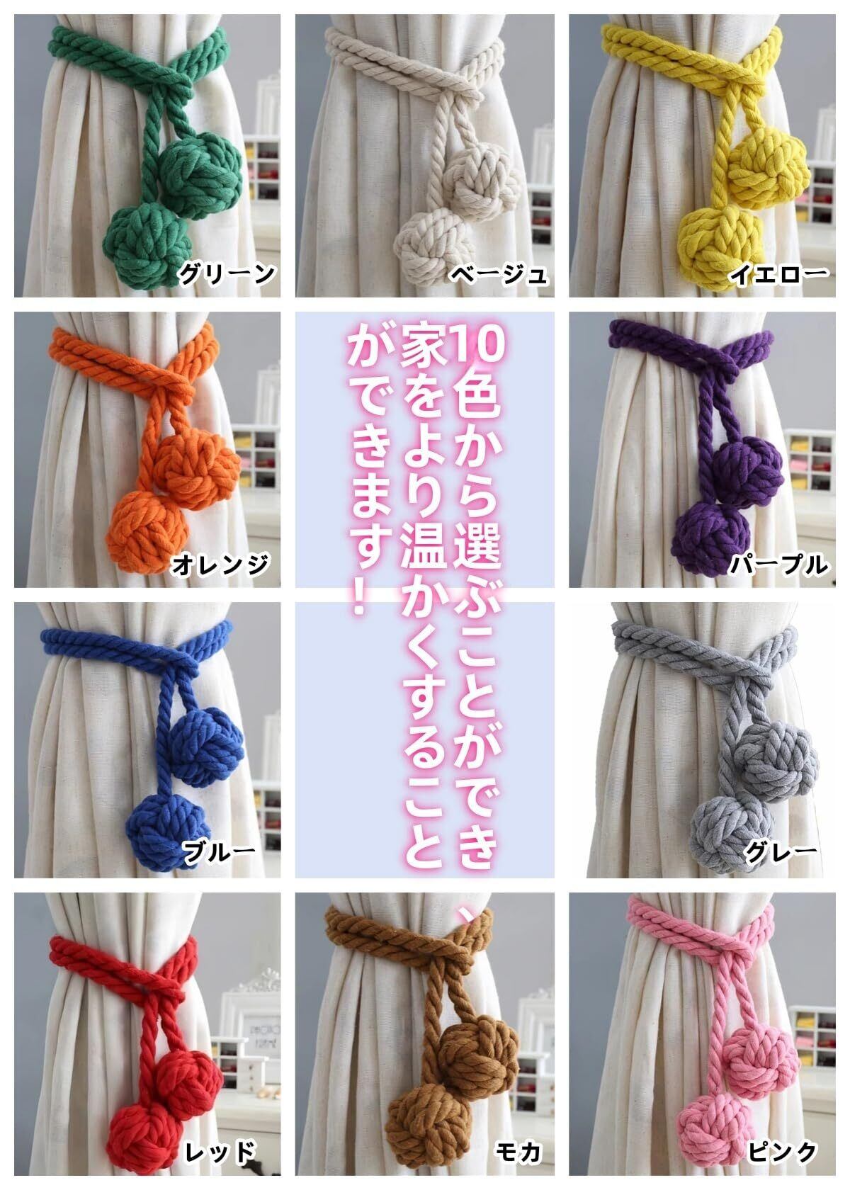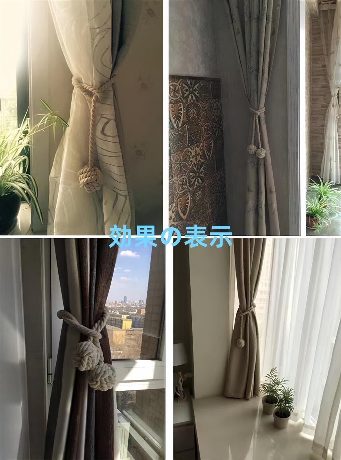 【商品仕様】サイズ:ロープ全長:116cm、直径(ボール状紐):7.5cm 材質:綿 重量:250g/個 パッケージ:2本のカーテンタッセル