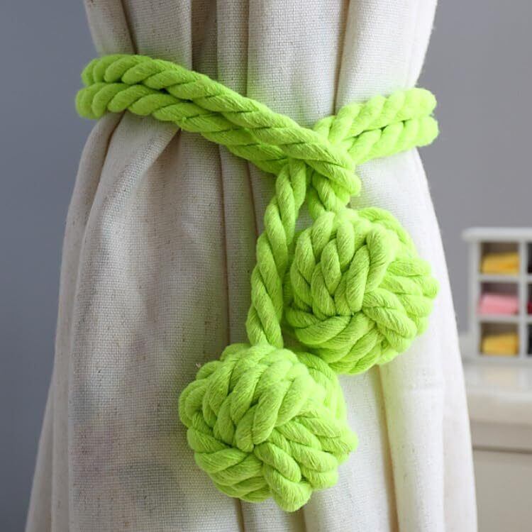 ILLIDAN カーテンアクセサリー 2個セット ロープ式 カーテンタッセル 綿糸 手編み カーテン留め飾り ロープタッセル 窓飾り 紐 締め 房掛け バックル ホルダー おしゃれ 留め飾り 取り付け簡単 留め具 とめる やつ (ライトグリーン)