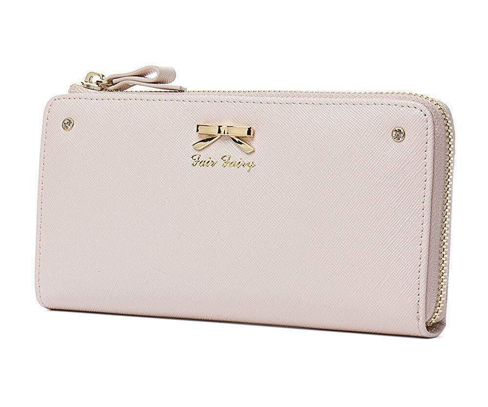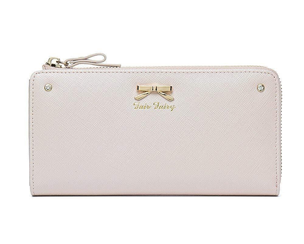 [フェアーフェアリー] 財布 L字ファスナー 長財布 本牛革 シンプルリボン レディース 160724 (ピンクベージュ.アウトレット)