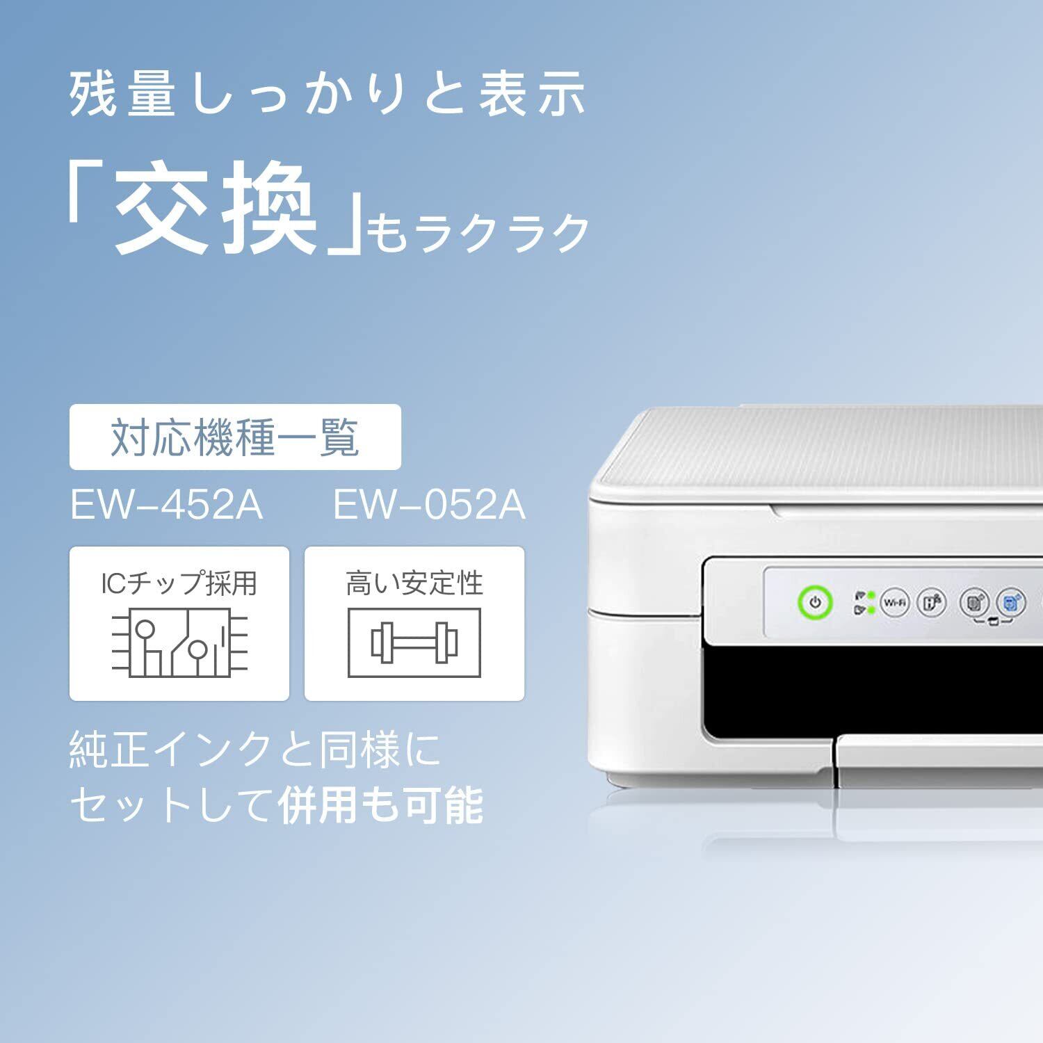 【対応機種】Epson用 エプソン互換 EW-452A EW-052A プリンター ※インクカートリッジをご使用になる前に、必ず説明書をご確認ください。基本的な使用方法やよくあるご質問の対処方法が記載されてます。
