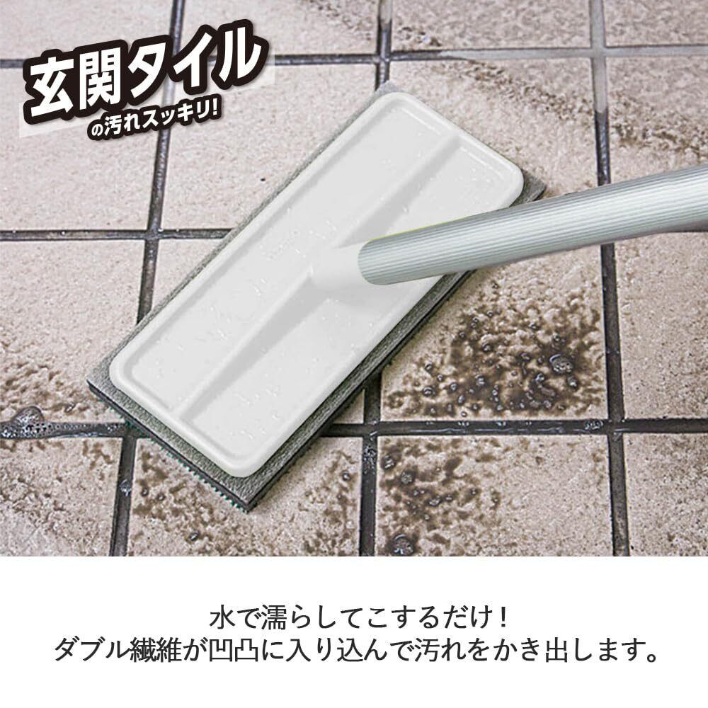 玄関タイルや外壁を力を入れてゴシゴシブラッシングできます。ダブル繊維の効果で洗剤を使わず水に濡らしてこするだけで汚れをしっかりかき出します。伸縮柄なのでお好みの長さに調節でき、収納もコンパクトになりました。