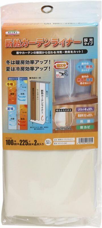 明和グラビア 冷気を防ぐ 窓 冷暖房効率UP カーテン 省エネ 節電 採光 UVカット 取り付け簡単 ホワイト 半透明 断熱カーテンライナー 100cm×225cm 2枚入