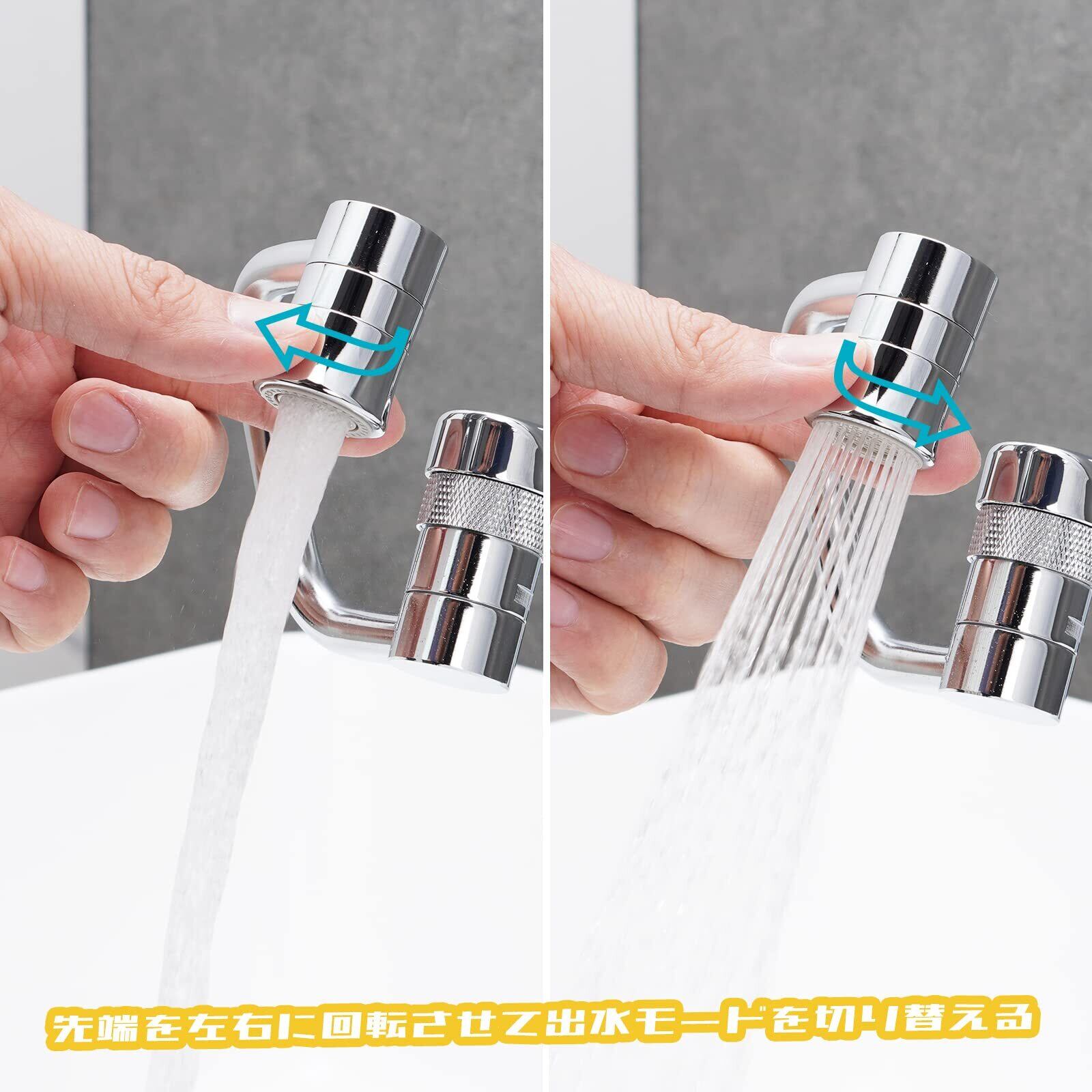 「1080度回転」ヘッドの向きが変えられるよって、水流の方向が自由に変換できるので、洗い物など楽になりました
