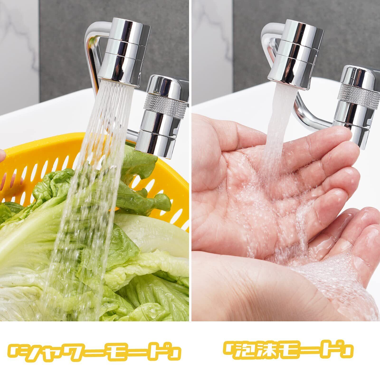 「2段階切り替え」蛇口の先端に取り付けるだけで、シャワーか泡沫出水かを簡単に切り替えられます