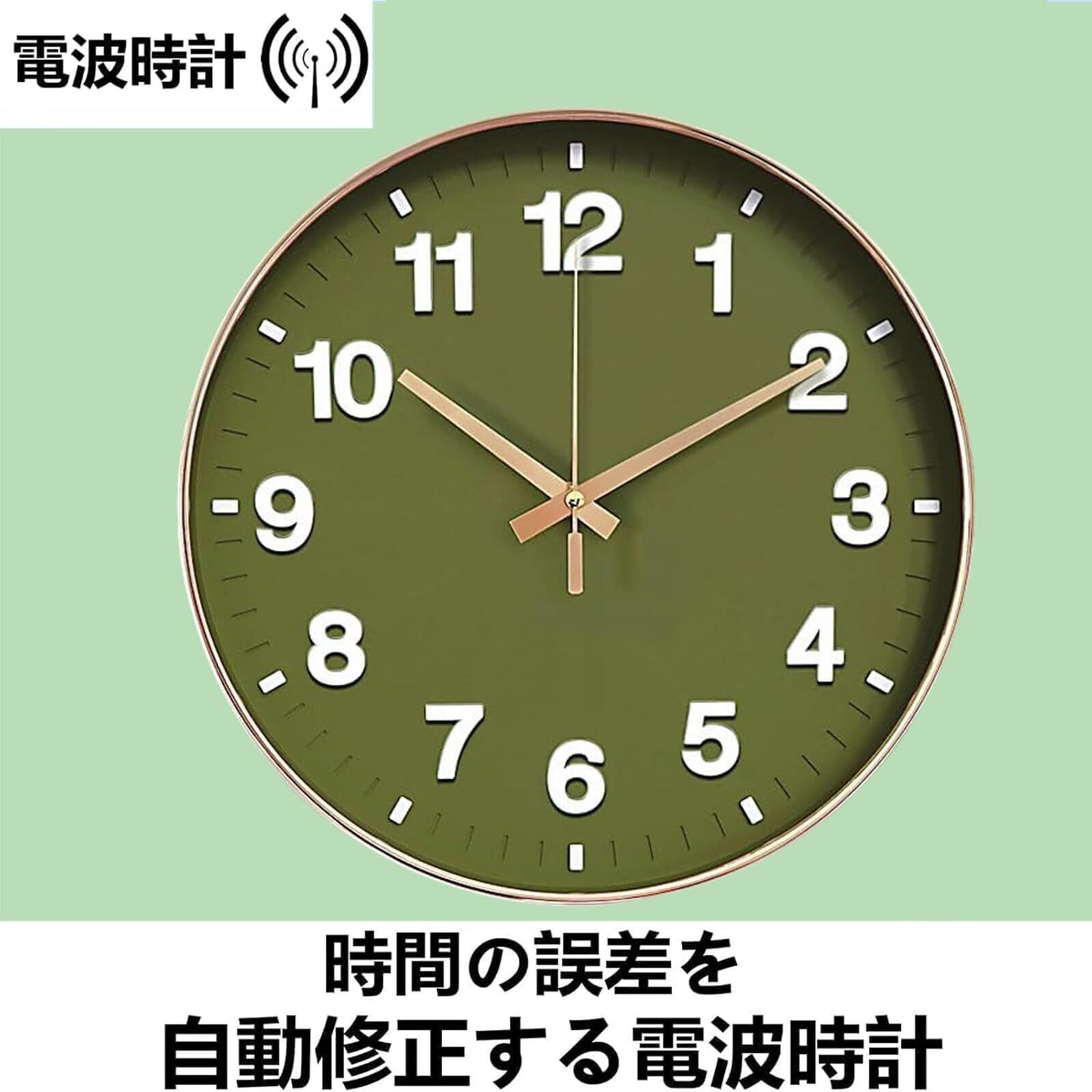 Nbdeal 掛け時計 電波 アナログ 連続秒針 静か 立体文字 直径30cm (グラスグリーン)