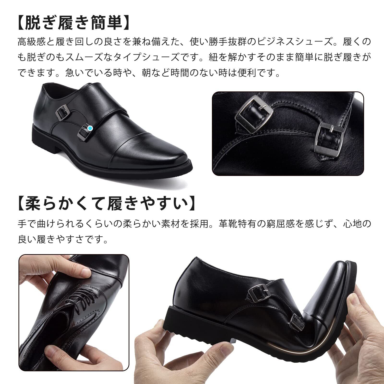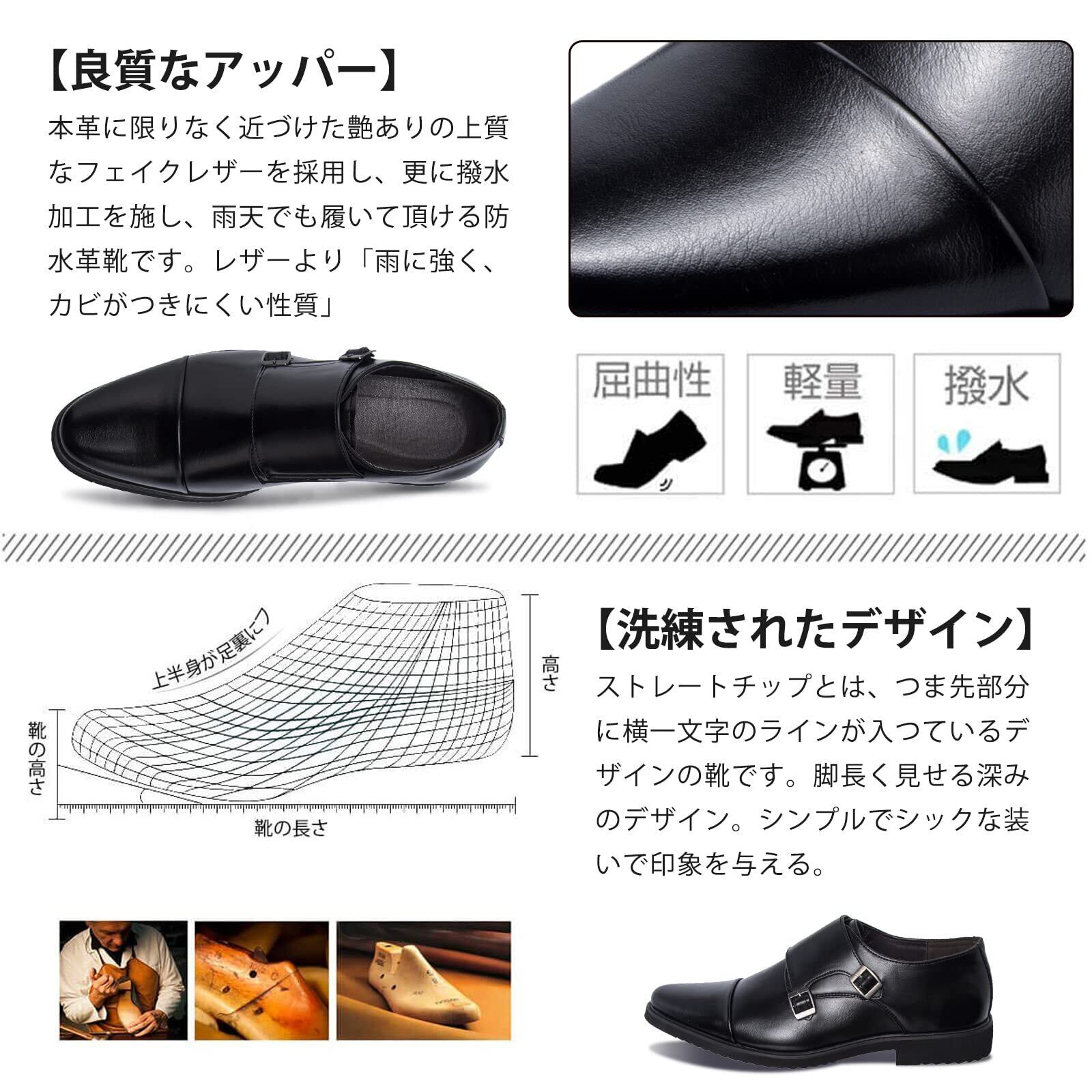 [todaysunny] ビジネスシューズ メンズ 革靴 紳士靴 黒 皮靴 ウォーキング ドレスシューズ 内羽根 ストレートチップ ロングノーズ モンクストラップレースアップ シューズ 軽量 防滑 防臭 通気 通勤 フォーマル 冠婚葬祭 24.5-28cm