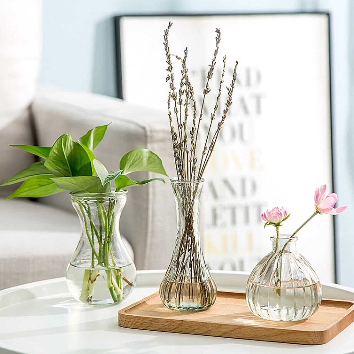 ガラスの花瓶 3つセット ミニ花器 一輪挿し 透明 - フラワーベース花器 ガラスベース ガラスボトル + 3つセット 水栽培 おしゃれ シンプル 生け花 造花アレンジ インテリア インテリア雑貨 飾り瓶 北欧 レトロ風
