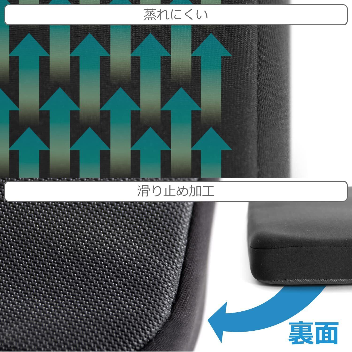ゲル素材、高密度低反発クッション、ウレタンクッションの3層構造で体圧を分散。(表面はネオプレーンを採用)