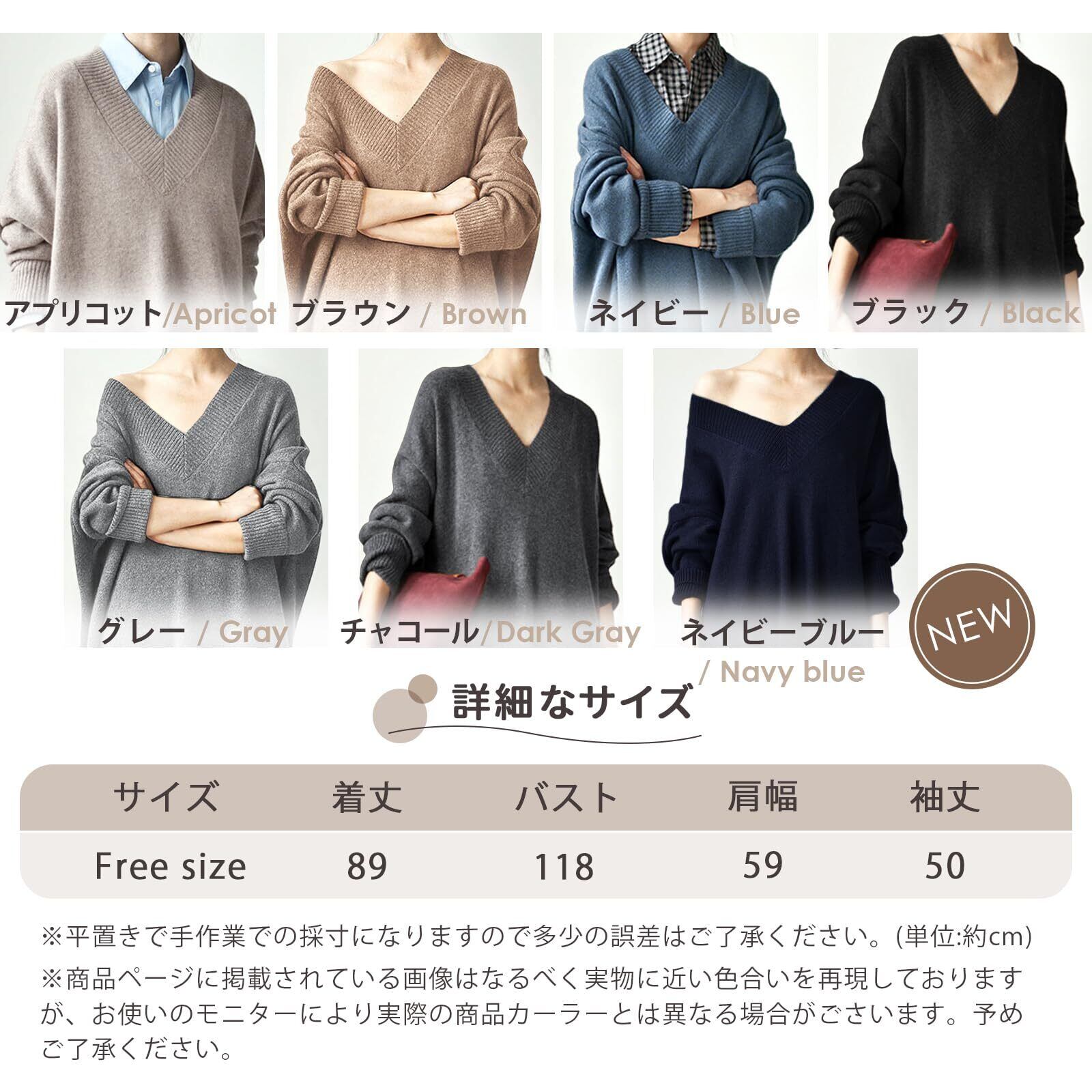 【ロングセーターでコーデを今っぽく】この秋、大注目の大人シルエットゆる感の無地セーターワンピースが新入荷!トレンド感のあるの着こなしを叶えてくれる!『ルーズシルエットVネックニットセーター』シンプルなデザインながら、鮮度の高いスタイルを演出。重ね着で楽しむことはもちろん、それ一枚でもこなれた印象を叶えてくれる「ニットチュニック」。上品な雰囲気に仕上がる落ち着いたカラー展開:清潔感あるアプリコット・ブラウン、定番ブラック・ネイビー・グレー 、おしゃれなチャコール・ネイビーブルーとの7色揃えています。