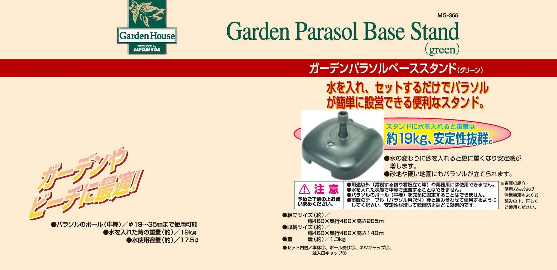CAPTAIN STAG ガーデンパラソルベーススタンド グリーン MG-355 幅460×奥行460×高さ285mm