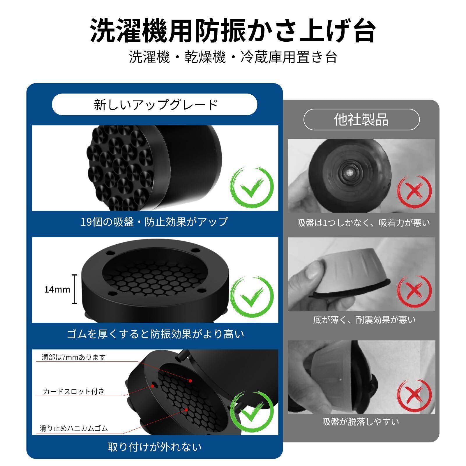 Ezprotekt 洗濯機用 防振かさ上げ台 8個入り 底上げ 防振ゴム 洗濯機置き台 滑り止め 床傷防止 乾燥機・冷蔵庫用 ブラック