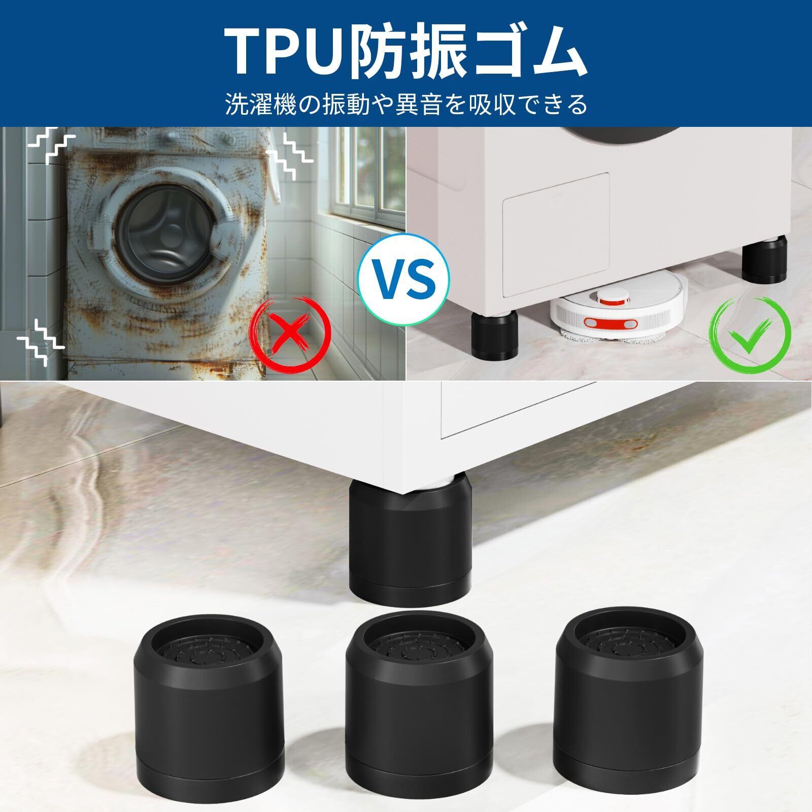 【しっかり安定性】重い洗濯機でもしっかりと支えることができる強固な造りで、どんな振動にも耐えうる堅牢さを備えています。優れた支持力により、家電や家具をかさ上げだけでなく、家電作動時の振動や異音を吸収でき、振動や騒音を低減します。