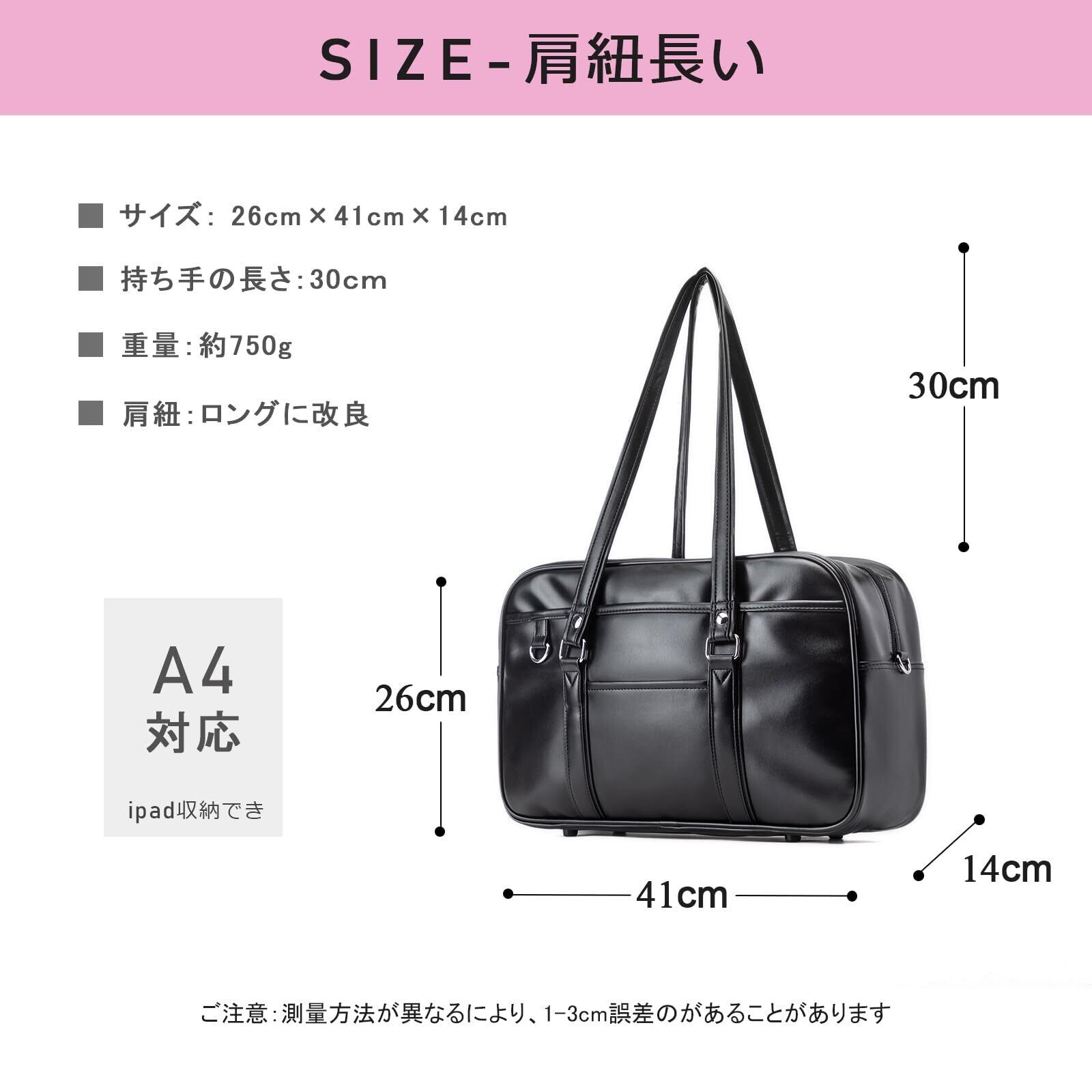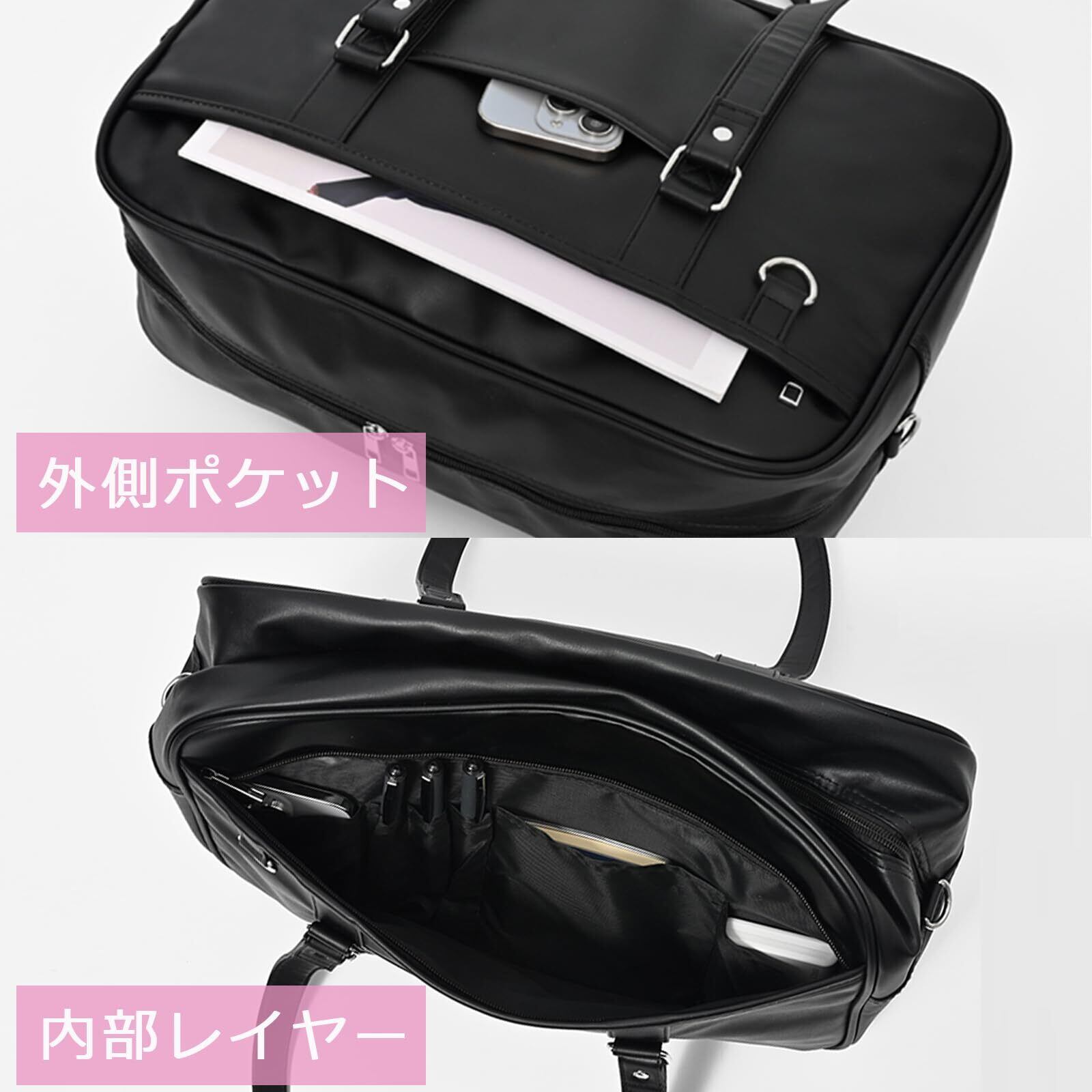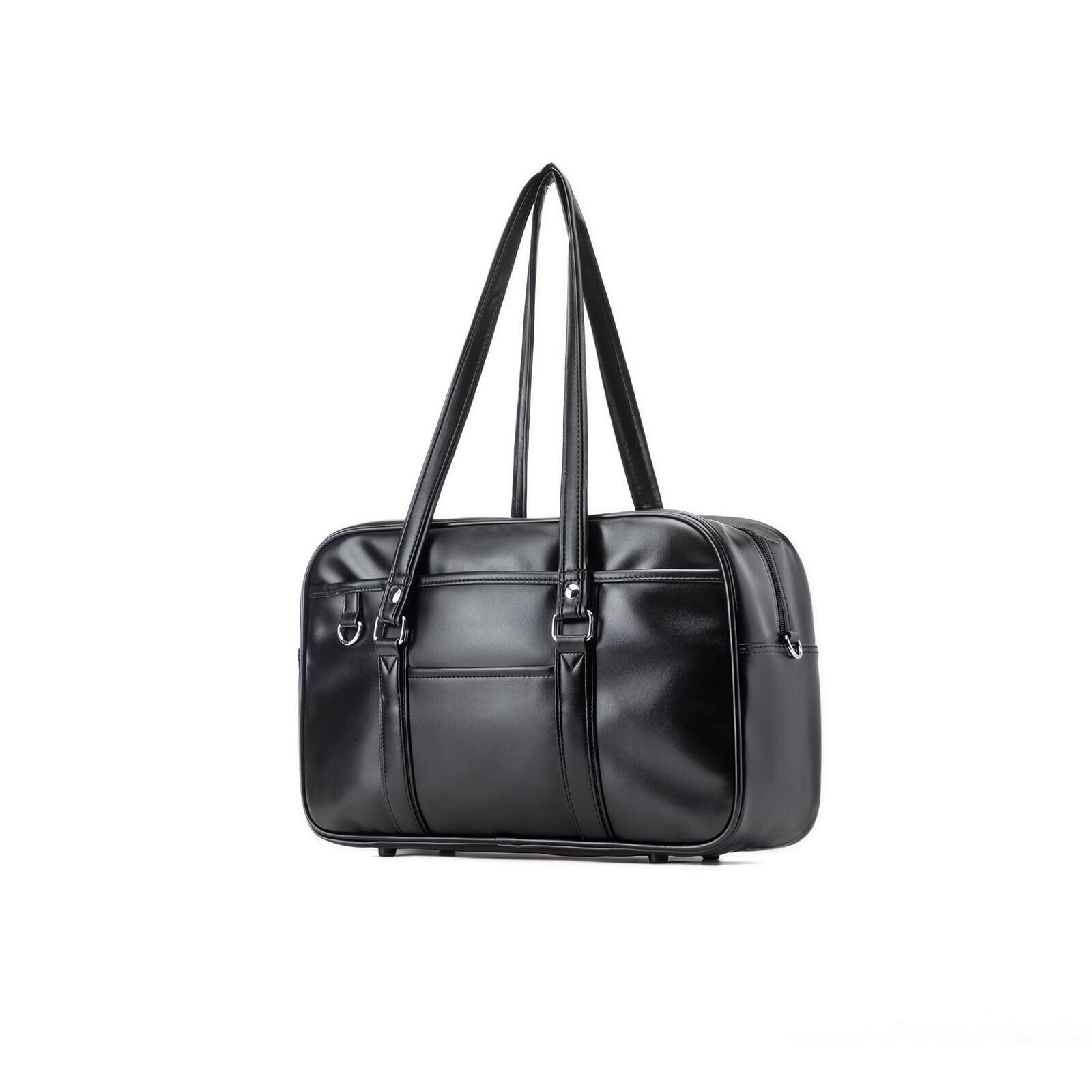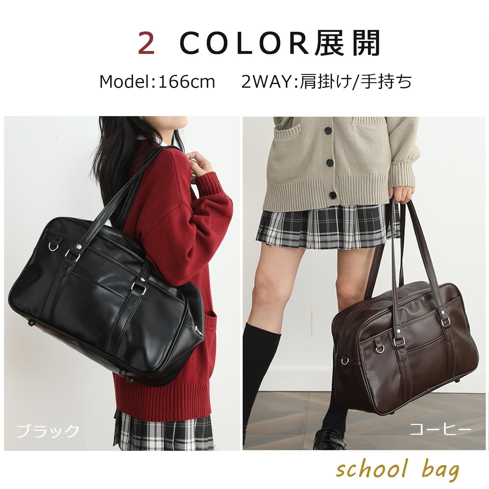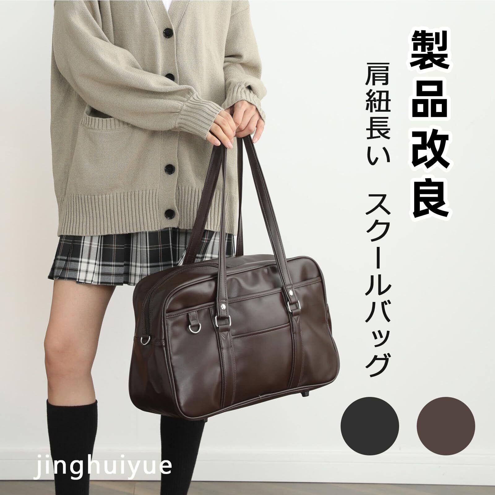 [jinghuiyue] スクールバッグ 高校生 女子 通学 ボストンバッグ 合皮 大容量 軽量 男女兼用 肩紐長いブラック