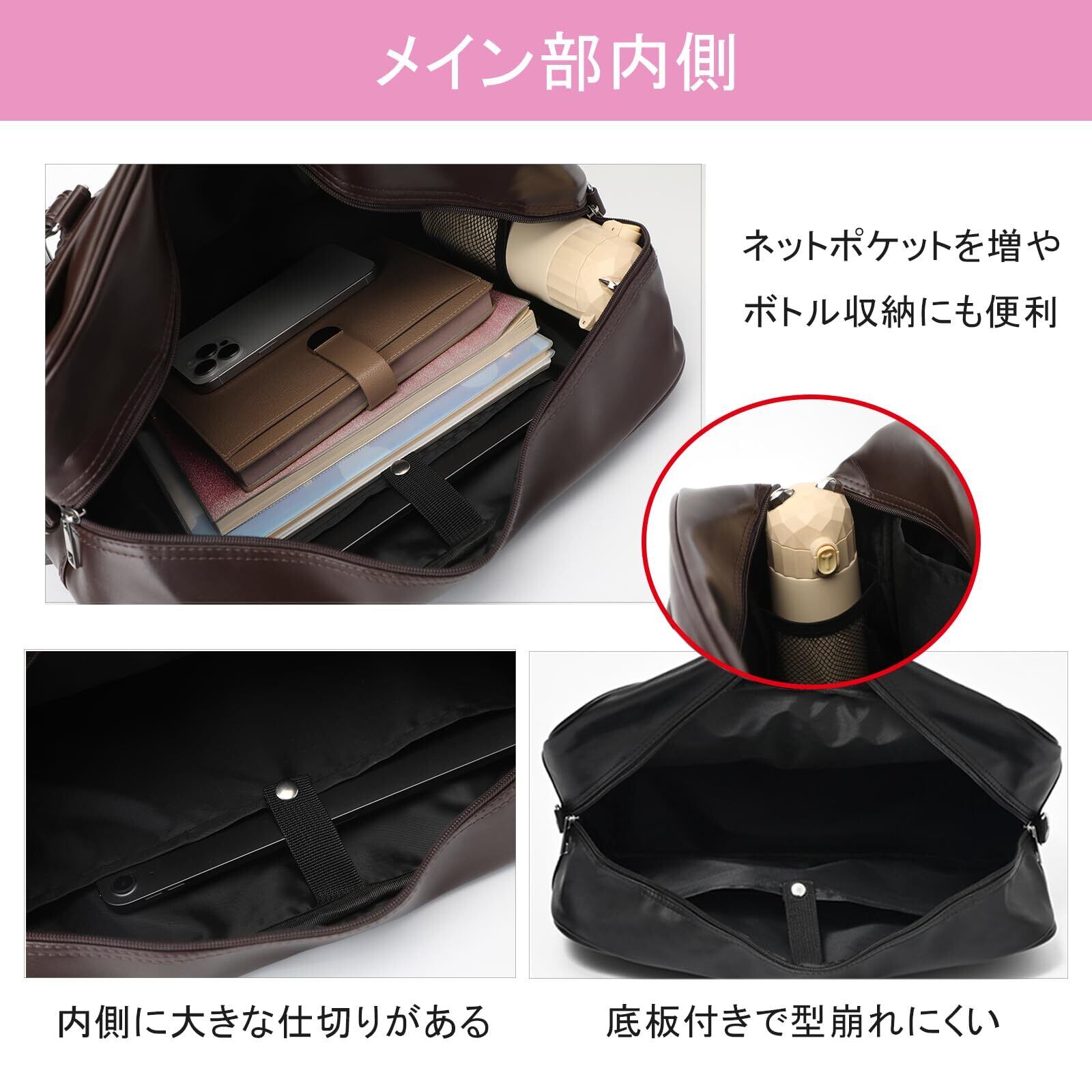 大容量--メインのポケットにはA4の大きさに対応し、仕切りポケットも完備し、お弁当と教科書、着替え、小物などを一緒に入れることもできます