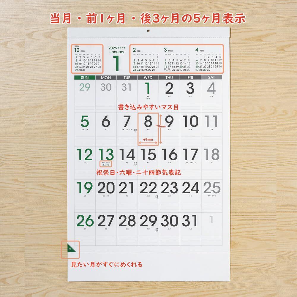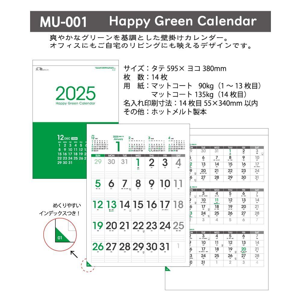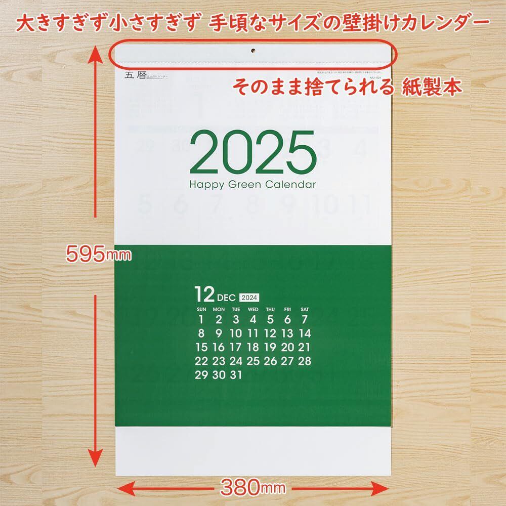 ムトウユニパック MU-001 HAPPY GREEN CALENDAR 2025年 カレンダー 壁掛け五暦 5ヶ月カレンダー