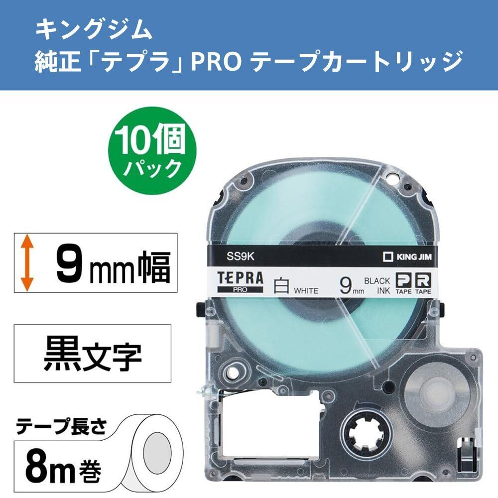 キングジム 【純正】 テプラPROテープカートリッジ エコパック10個入 9mm 白ラベル/黒文字 長さ8m SS9K-10PN