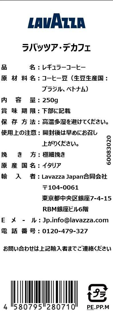 LAVAZZA(ラバッツァ) デカフェ(カフェインレス) (粉) 250g