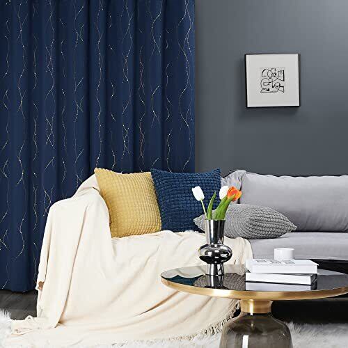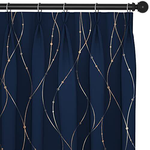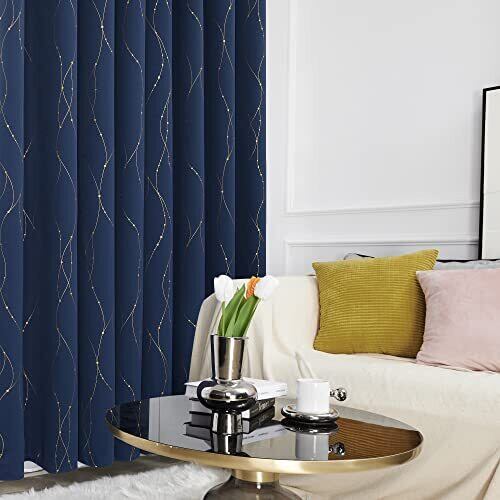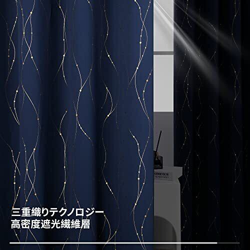 Deconovo 1級遮光 ドレープカーテン 幅100cm丈135cm 紺色 金箔プリント 点線柄 断熱 遮熱 防音 節電対策 昼夜目隠し 2枚組