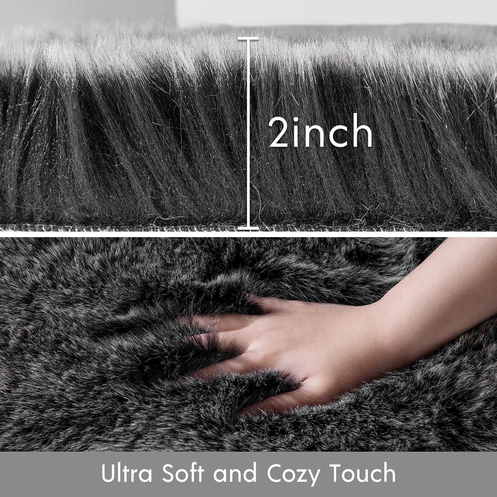 Phantoscope ラグマット カーペット ムートンマット 滑り止め付 柔らかい シープスキン 厚手 極厚毛足約5cm 手触り優しい ふわふわ 折り畳み 洗える 抗菌 防ダニ 北欧 キャンプ 冷房 床暖房対応 60×180cm ホワイティッシュチップ&ブラック